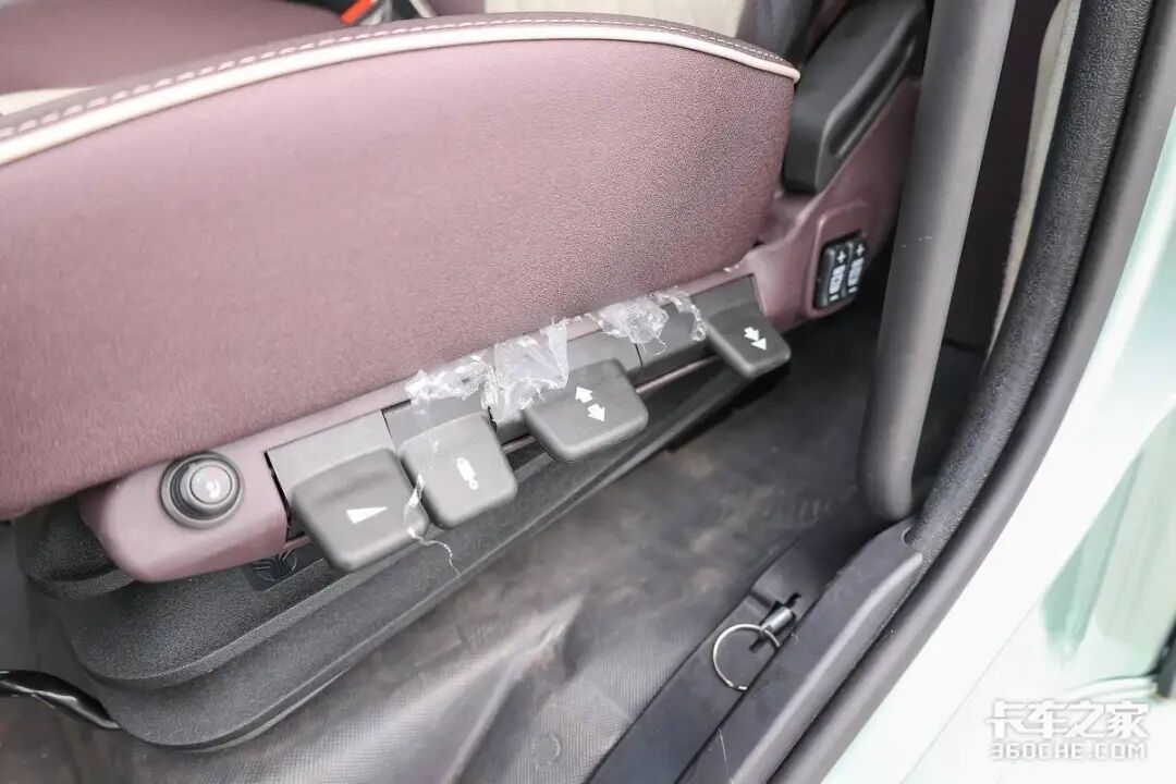主驾座椅装备的是格拉默气囊减震座椅,除了一般的减震阻尼、座椅高度、坐垫倾角调节和腰部支撑功能以外,该座椅还有通风加热功能,让我们一年四季驾车更加舒适。