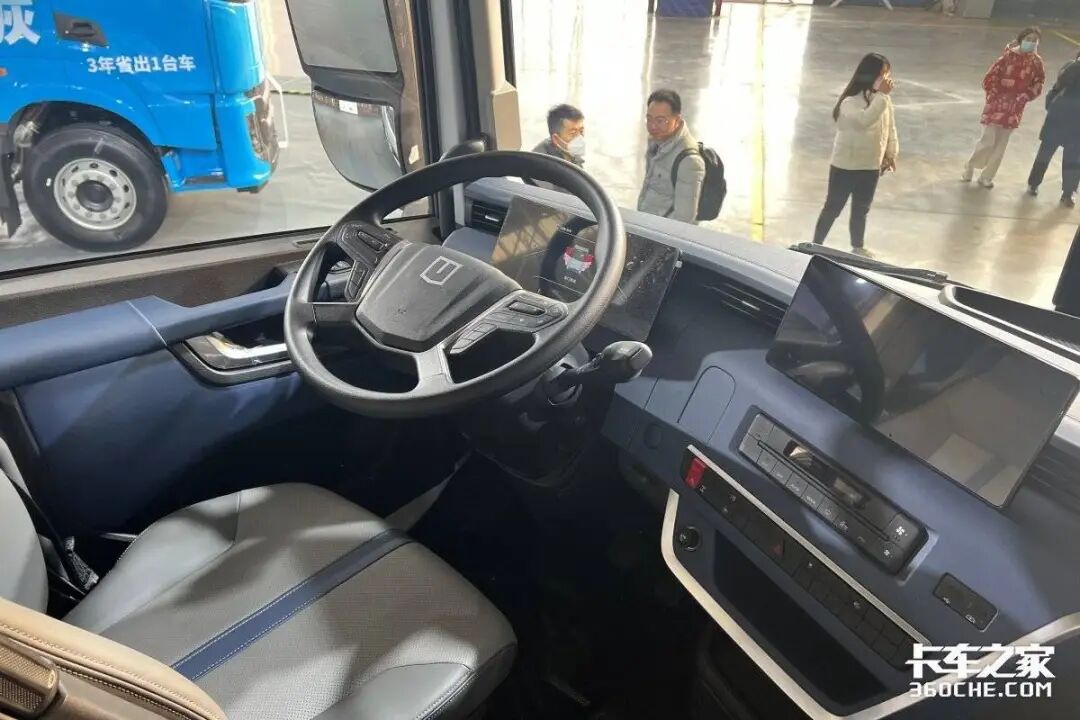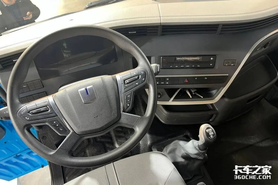 星瀚G纯电普货牵引车的配置则更豪华一些,有全液晶仪表、超大中控液晶屏,还有电动车窗、电动后视镜(带加热)、自动空调、自动大灯、LDWS+FCWS、定速巡航、制动能回馈系统、270全景影像(可选)等配置。