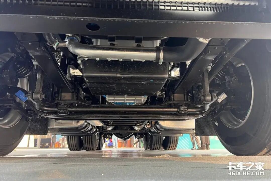 实拍车型的底盘采用采用7吨级轻量化前桥、HL439后桥,速比为4.11。还有前2后3的少片簧悬架及总容积为1130升(510+620L)的甲醇油箱。另外,星瀚G甲醇普货牵引车匹配规格为12R22.5 18PR型号轮胎,其轮辋可选铝合金材质。
