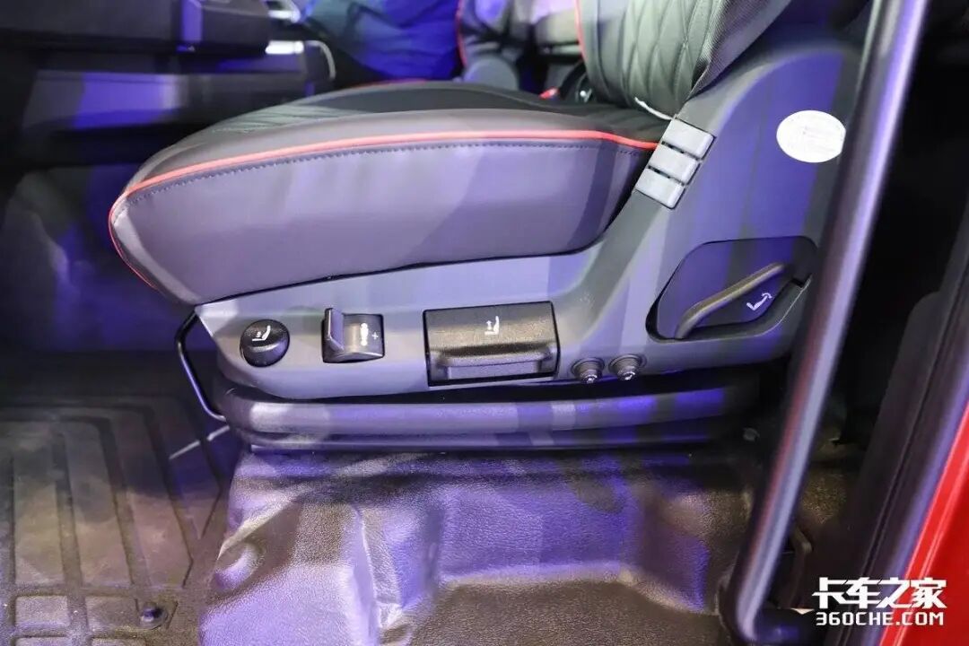 另外,该车针对舒适性布置有通风加热的气囊减震座椅,并支持减震阻尼、坐垫倾角、腰部背部支撑等调节选项。驾驶室操作台上还布置有多功能方向盘、组合式仪表,还有12.3寸悬浮式中控屏,可对货车导航、四方影像、手机互联、影音娱乐、车联网功能等进行操作,进一步提高的驾乘舒适性。
