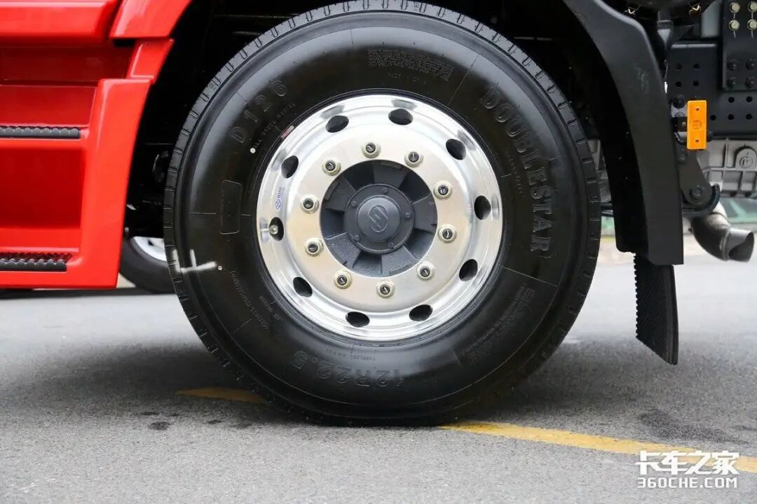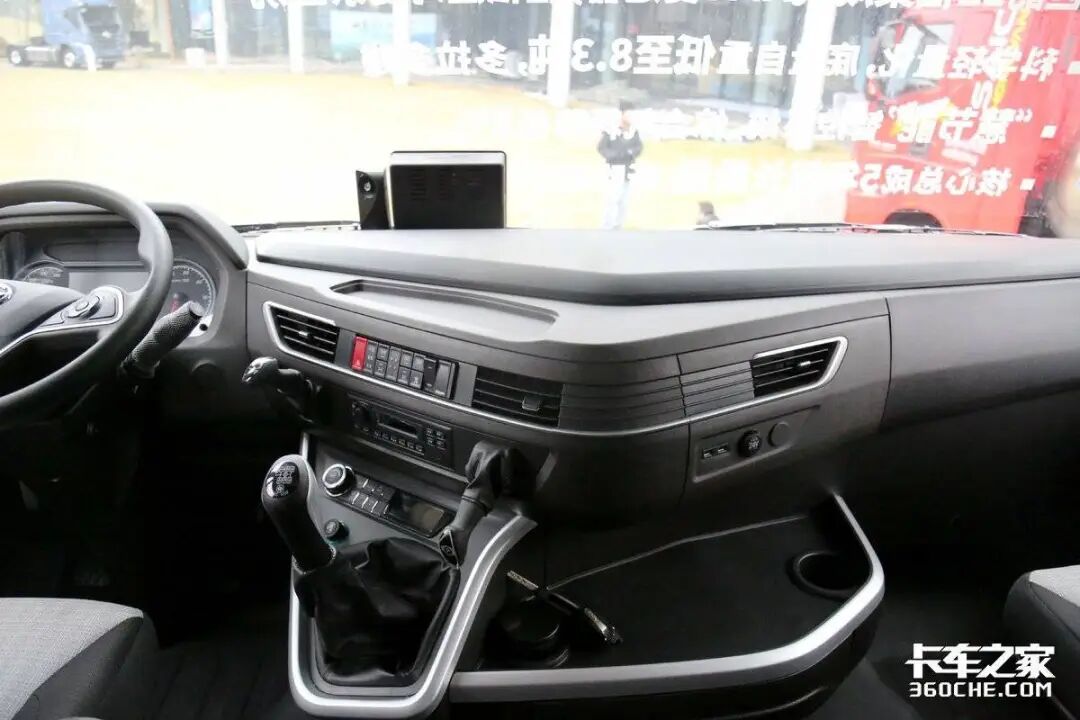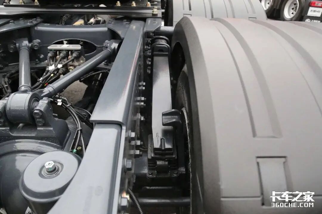 其它配置方面,该车装配的是HY420驱动桥,速比有多种可选,其中最小速比更是可以选到2.643,拥有更佳的高速经济性。同时,该车的后桥具备50万公里免维护设计。
