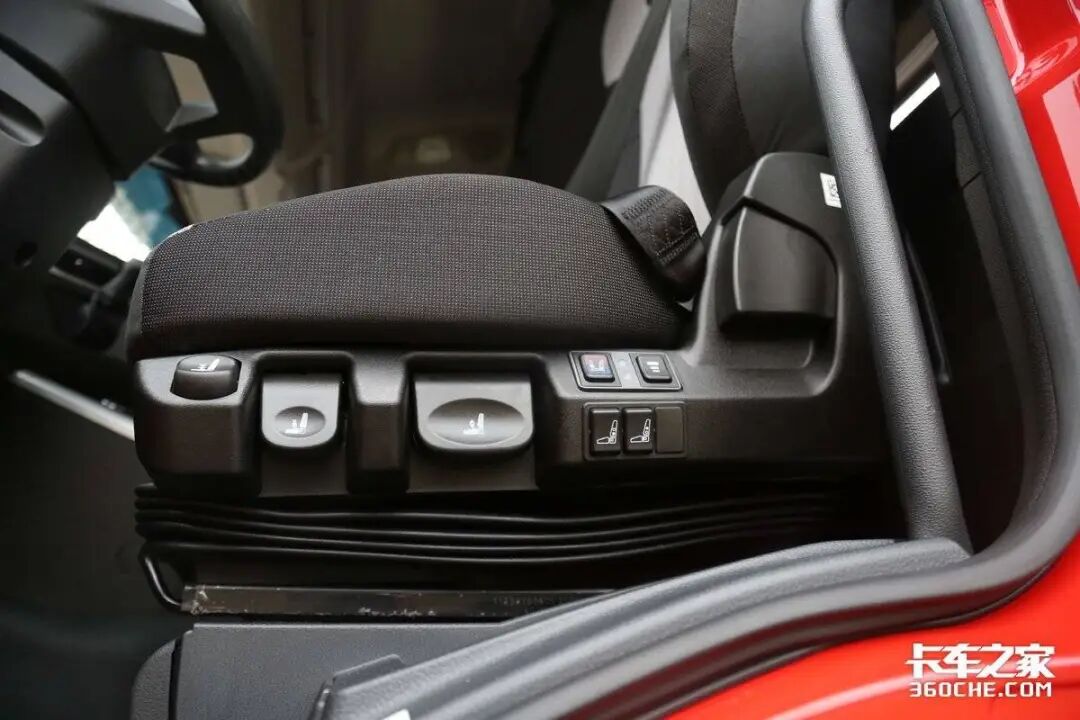 拉开车门,杰狮C6-PLUS 6×4 LNG牵引车的主驾驶位配备有气囊减震座椅,除了有座椅俯仰角度、高度、前后、腰背部支撑调节以外,该座椅还配备有座椅通风及加热,无论是酷暑、寒冬都能保障舒适的驾乘体验。