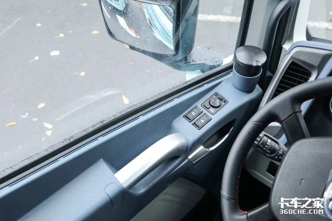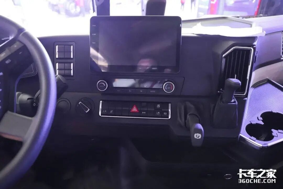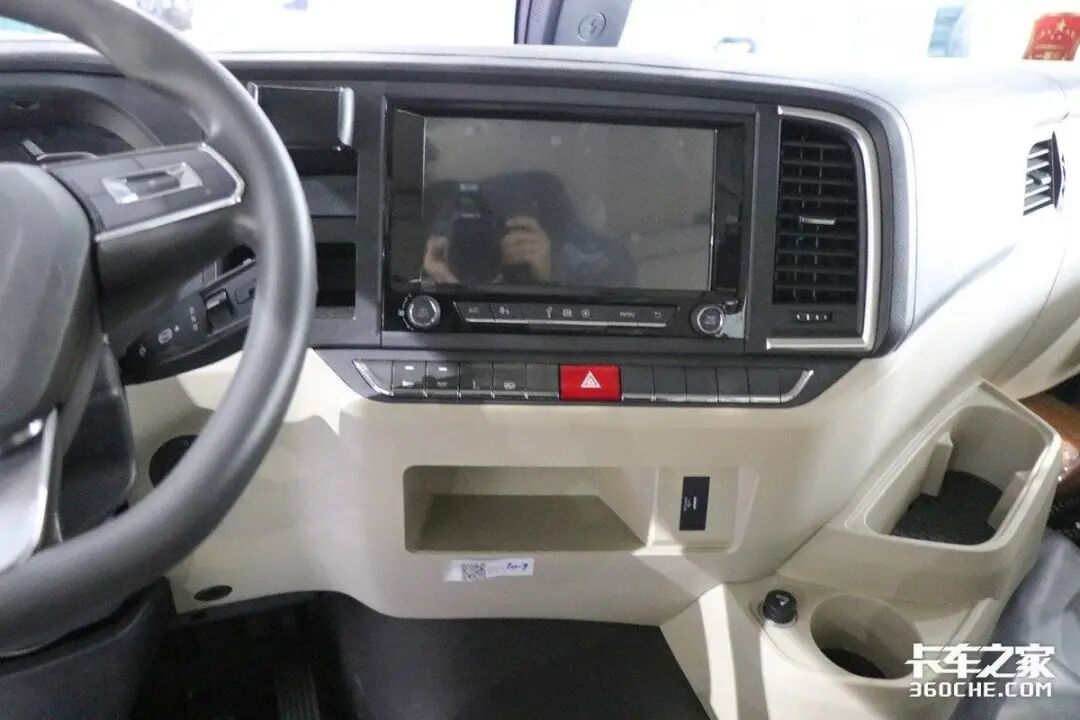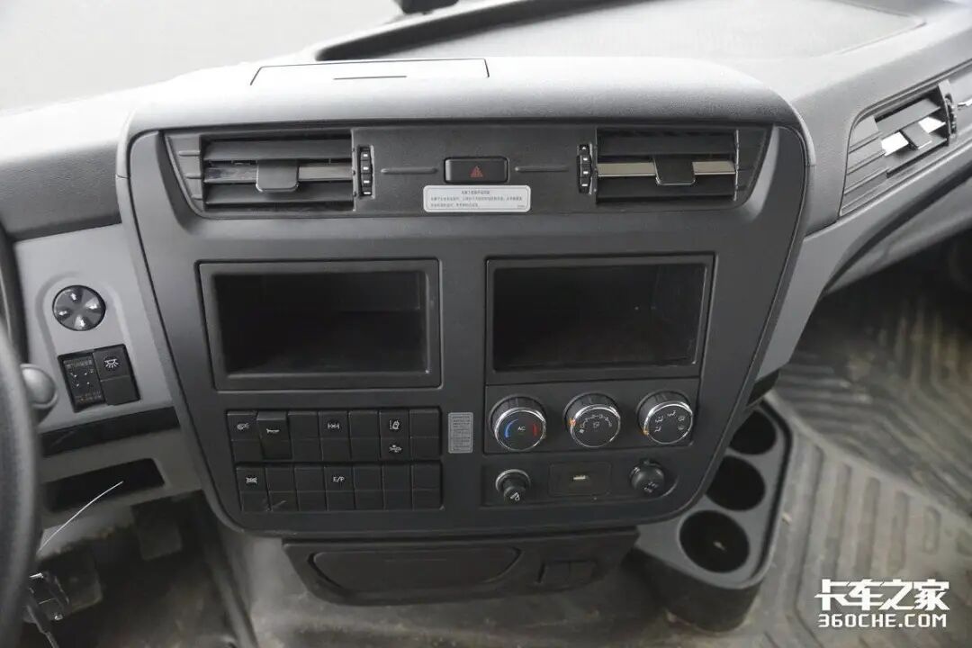 实拍车型的驾驶室也是十分豪华,其采用高顶双卧平地板驾驶室,驾乘空间非常宽敞。再加上标配的四点气囊悬置及气囊减震座椅,进一步提高驾乘的舒适性。