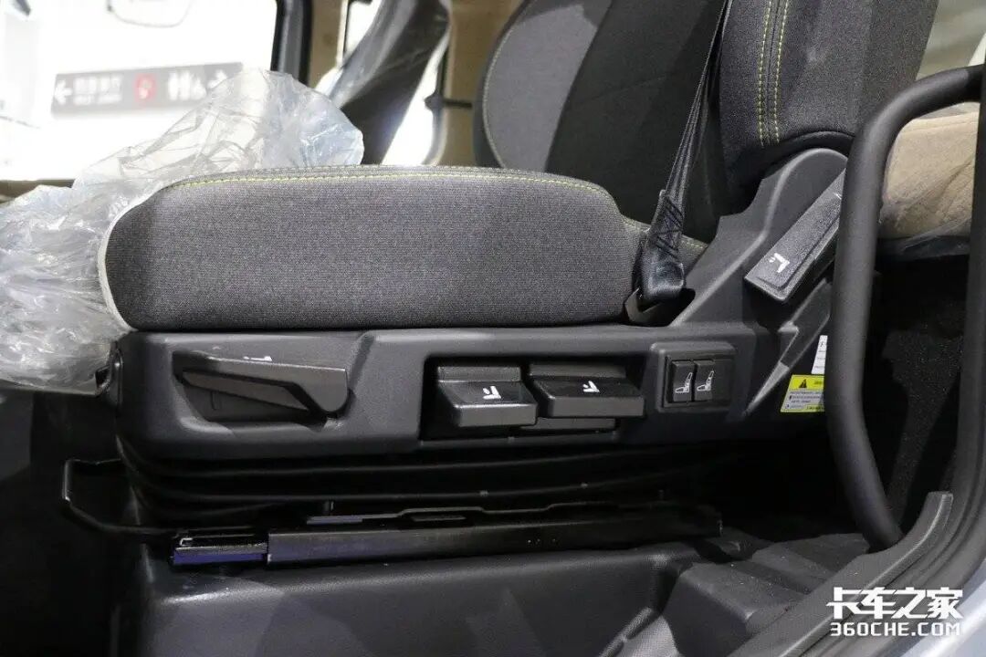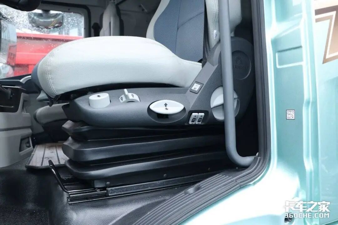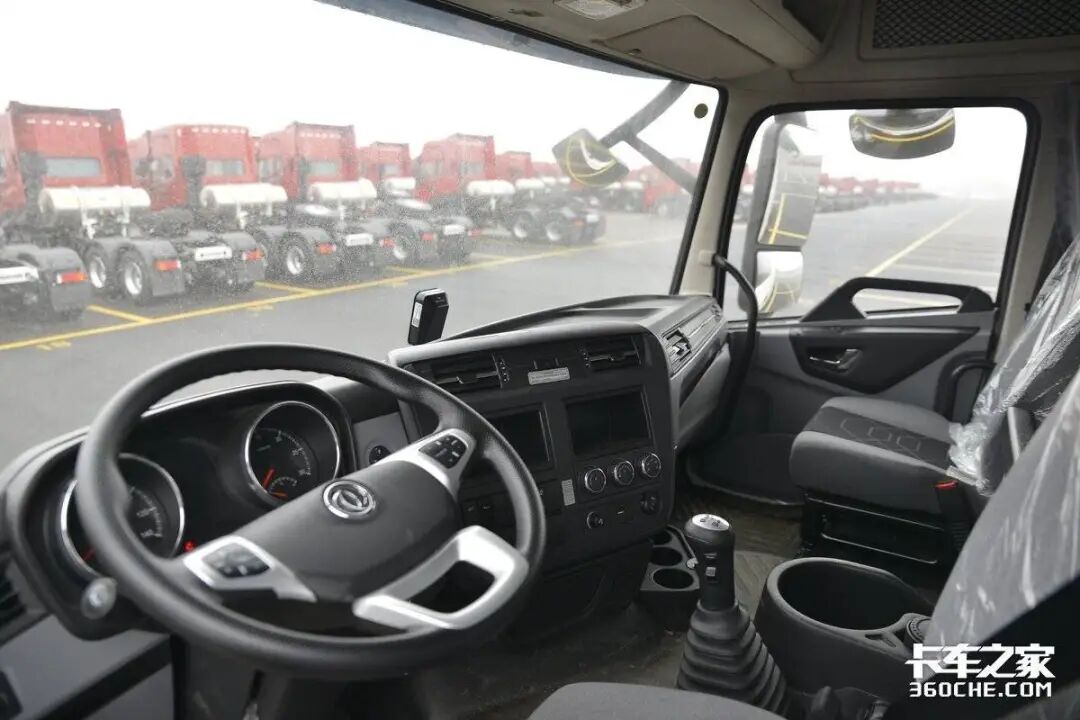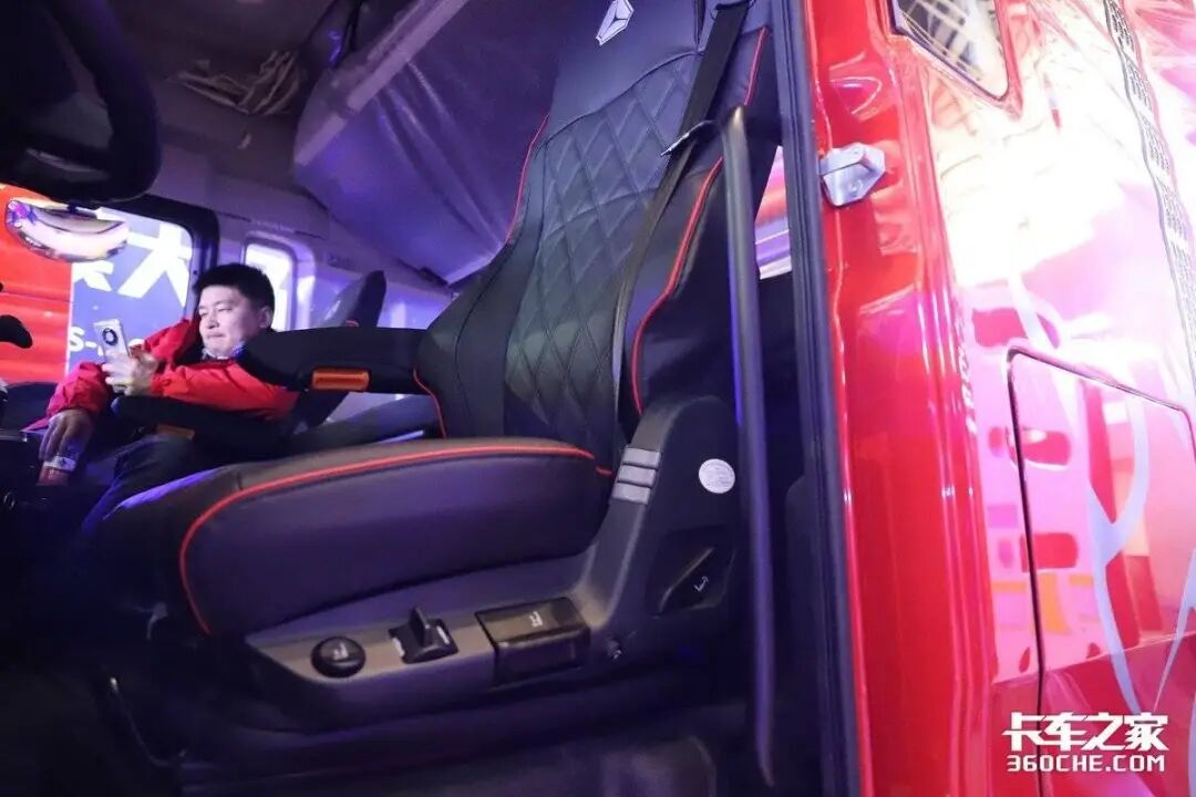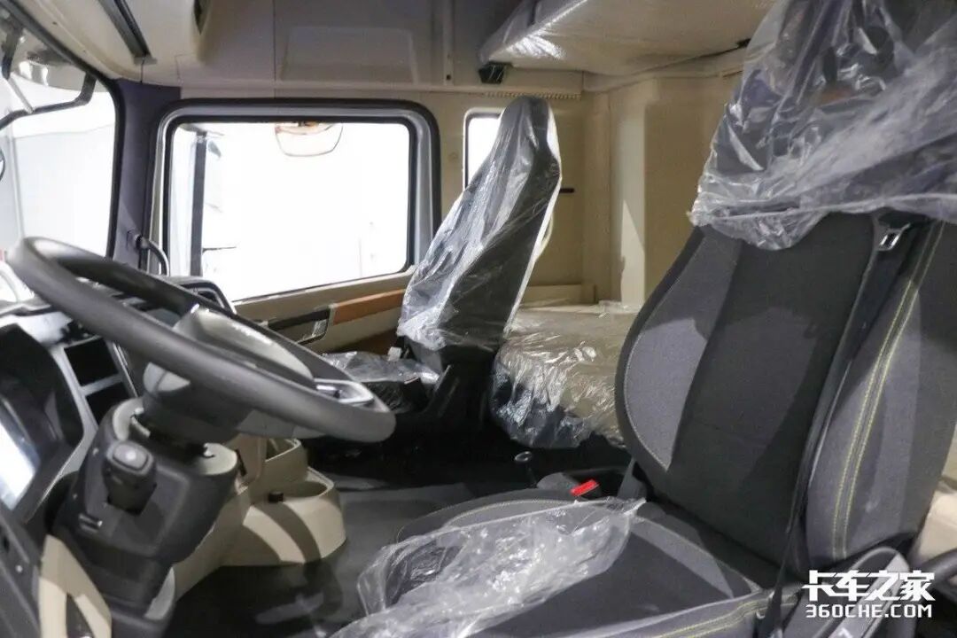 在驾驶室设计方面,天龙KL采用了平地板设计,便于主副驾驶的切换以及前后排的移动。主驾驶座椅配置了通风加热和气囊减震功能,结合工况调教,大大减轻了长途驾驶的疲劳感。