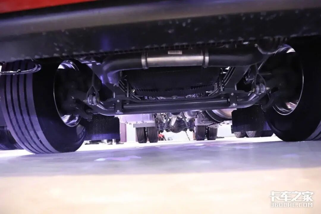 传动与之匹配12档变速箱,为AMT手自一体设计。该车底盘采用前2片板簧,后气囊悬架的设计,不仅降低了底盘自重,而且气囊桥的设计更方便甩挂运输,能够提高运输效率。