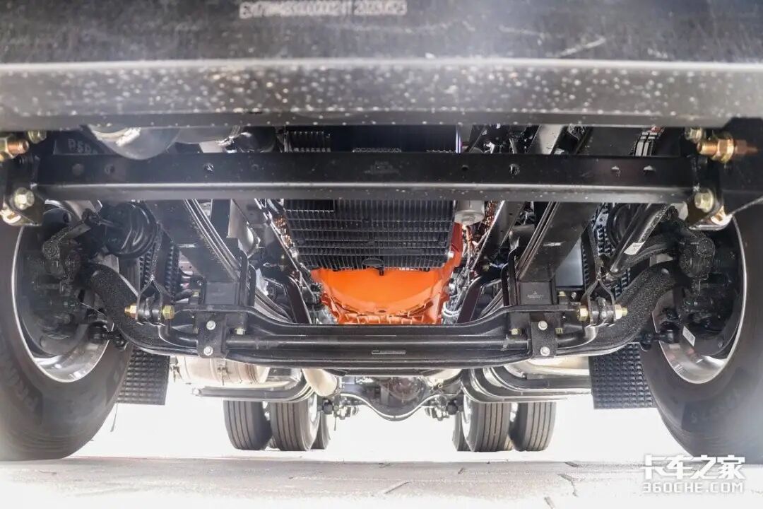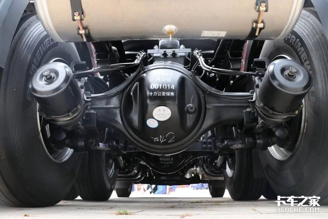 后桥方面,该车使用双440后桥,后桥速比为2.643,支持10万公里长保养间隔。大马力+直接档+小速比后桥使得车辆总速比较小,跑长途干线物流运输表现更为高效。我们通过卡车之家车速计算器计算可知,当发动机转速在1000-1200rpm时,变速箱采用最高档,该车车速可以达到75-90km/h,非常适宜长途高效公路运输。