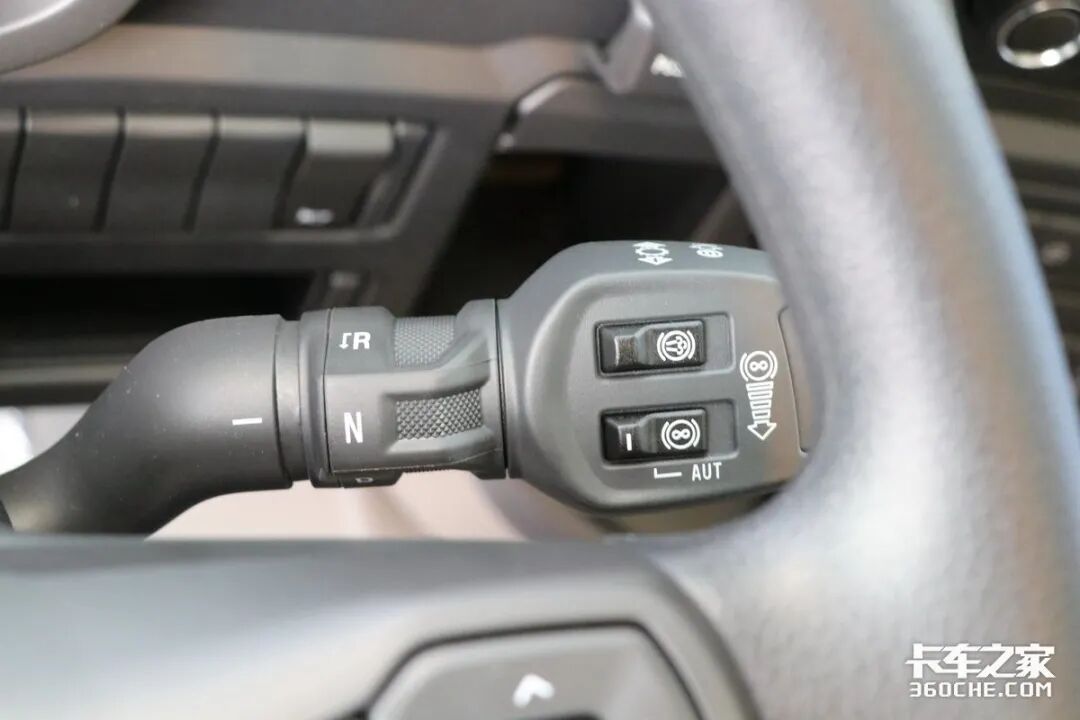 斯堪尼亚的挡杆采用了怀挡式设计,日常使用起来非常方便,并且我们可以看到,斯堪尼亚G系列还配备了发动机制动以及排气制动,配合后方五档可调的斯堪尼亚专属的RD4100惯性滑行式液力缓速器,最大制动扭矩可达到4100牛米,能够在山路运输中实现更快的长下坡速度。