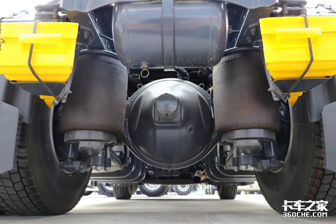 在底盘方面,实拍的G系列采用了前2片簧后气囊桥的设计,气囊桥的加入不仅能让G410在高速行驶更加稳定,而且对高附加值的货物拥有更强的保护性。最为关键的是,对于冷链、快运一类的高时效运输工况,气囊桥的加入可以实现更为快捷的甩挂运输,提升总体的运输效率。