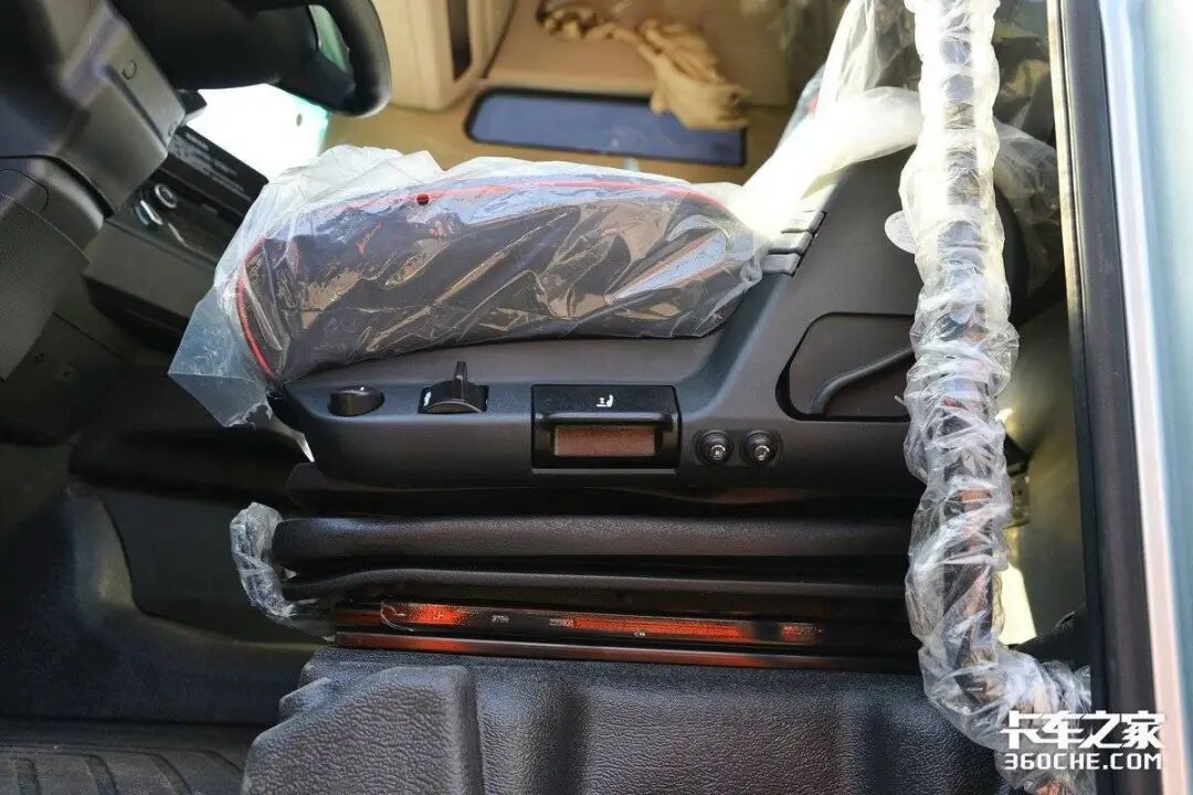 汕德卡G7H主副驾驶位均配备了气囊减震座椅,主驾驶位座椅配置优越,除了常用的座椅俯仰角度、前后、高度、减震阻尼等调节选项以外,还配备了腰部支撑调节,更重要的是还配备有座椅加热和座椅通风功能,即便是面对酷暑或寒冬,这款座椅都能给卡友们带来舒适的体感。