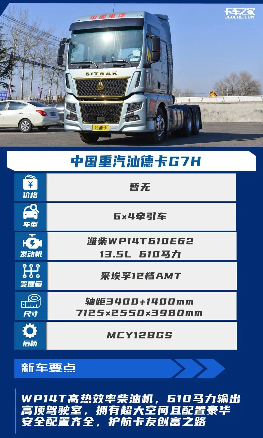 而提到大马力牵引车,有一个品牌不得不提,那就是汕德卡。以“进口替代”为目标的高端重卡品牌汕德卡,经过十几年的不断创新和升级,销量已经突破25万辆,并涌现了不少大马力牵引车代表。本期,笔者带来的就是于去年10月亮相的汕德卡G7H的610马力牵引车,我们于最近在市场上拍摄到了这款车。那么在它的身上都有哪些亮点呢,我带大家一起了解一下!