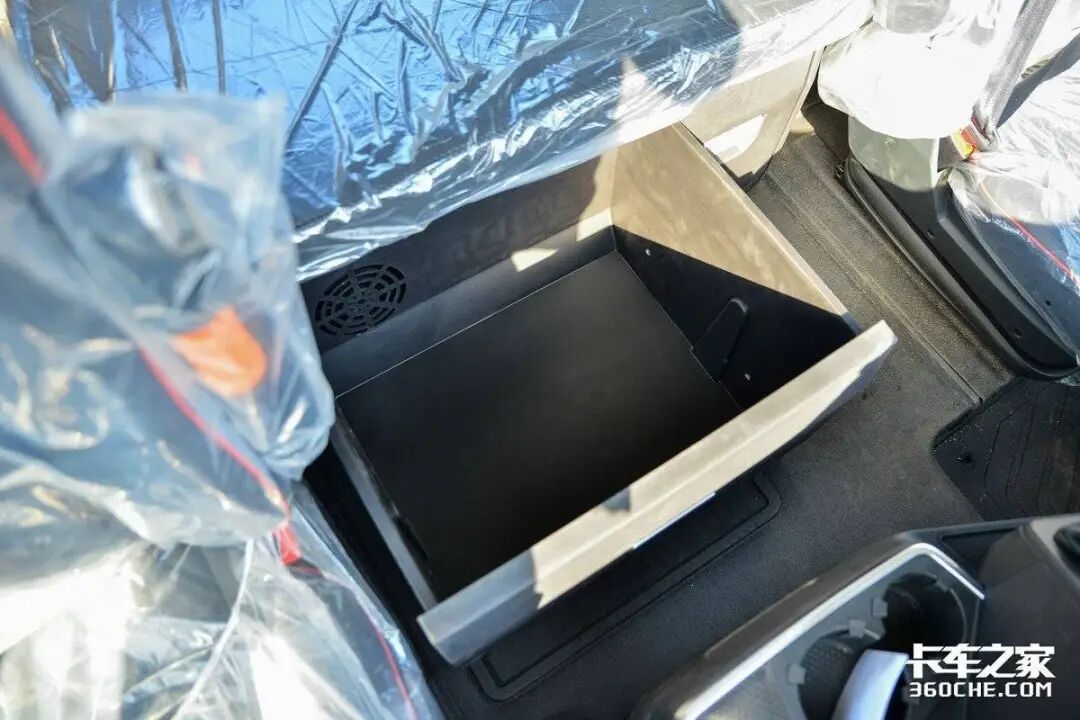 为了拓宽驾驶员的生活空间,G7H巧妙采地用了驾驶室后凸设计,将卧铺宽度拓宽至88cm左右,宽大柔软的卧铺给卡友们休息时提供了足够的自由度。而在卧铺下方,实拍车还配备了车载冰箱,满足了卡友们车上储藏新鲜食材的需求,结合车载逆变器可以在车上烹饪食物。