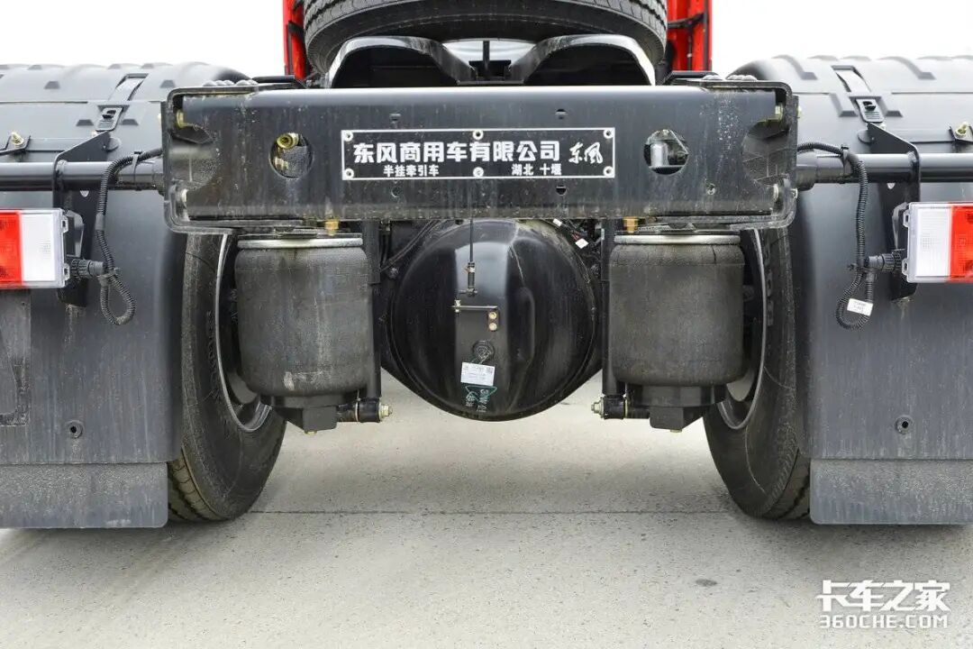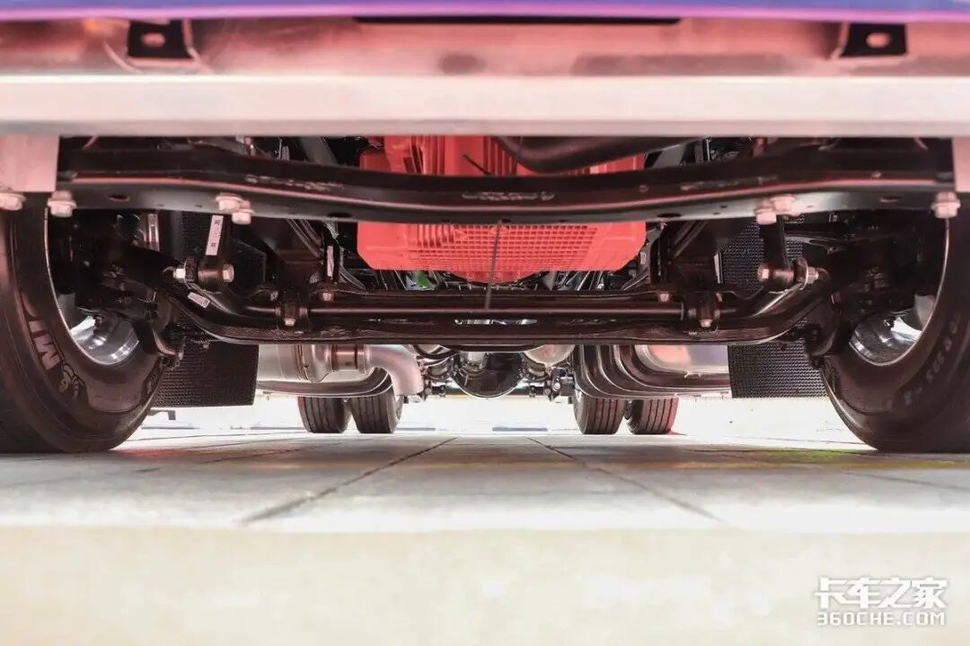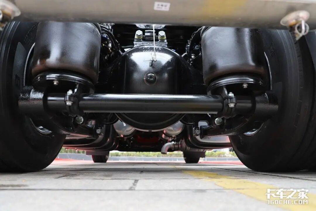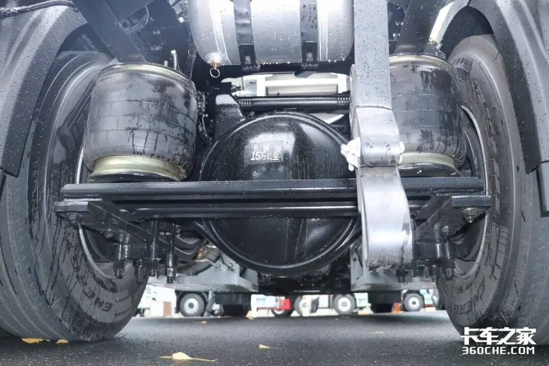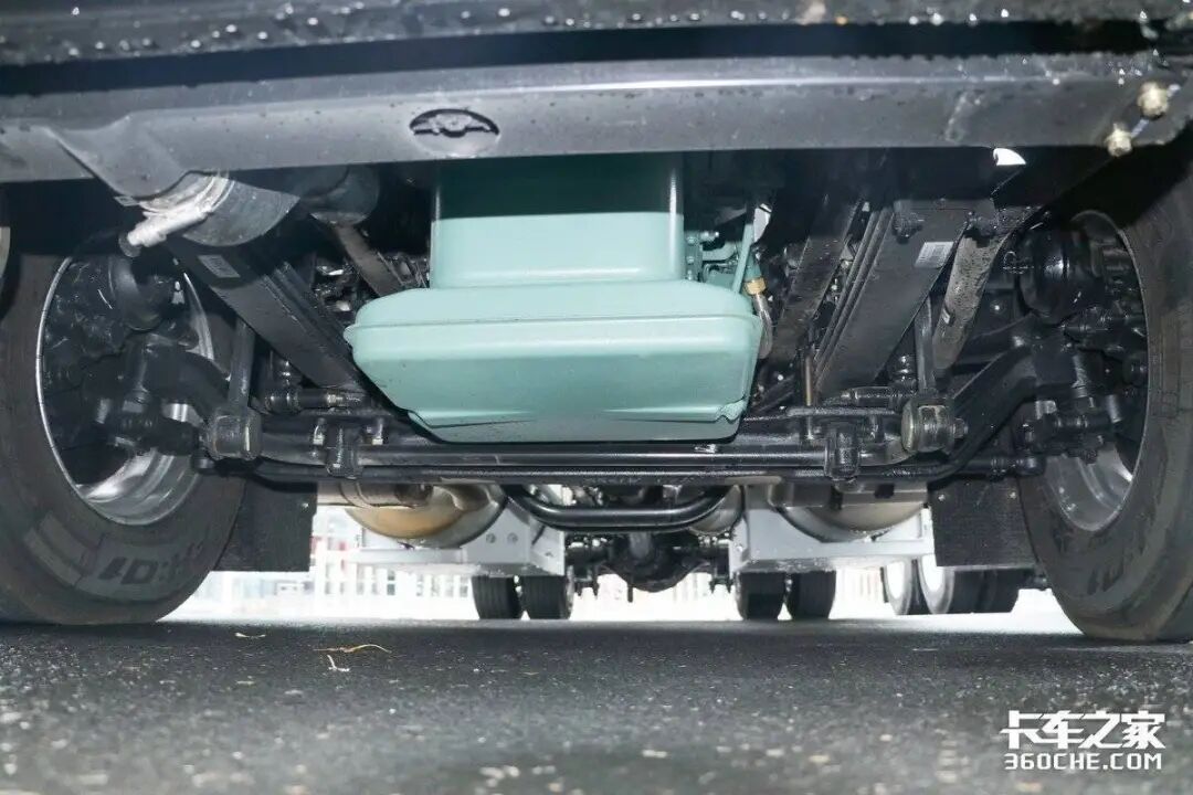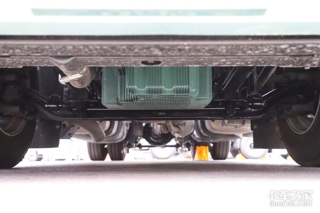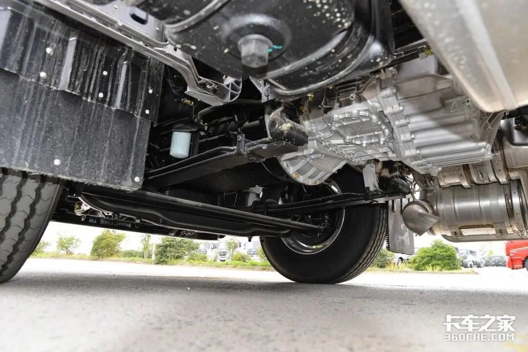 底盘方面,该车采用的是前2片板簧悬挂,后空气气囊悬挂的设计,同样在降低货损方面均有十分积极的作用。此外,实拍车型后桥速比为2.714,支持三十万公里长换油设计,另外还可选更小的2.533、2.44后桥速比。