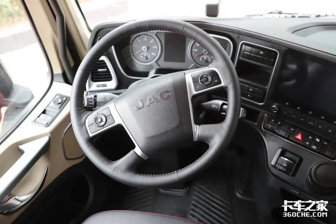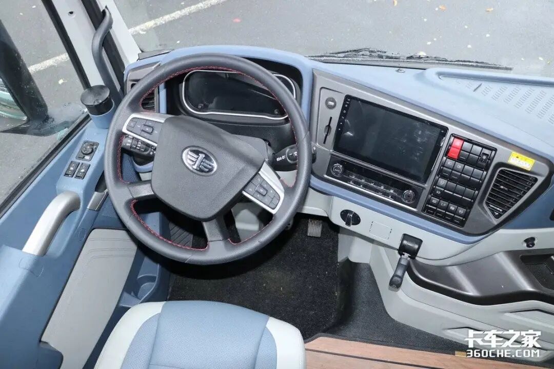 进入车内,解放JH6驾乘舒适性相信市场上是有口皆碑,无论是内部空间,还是质感方面,都是同级中极为出色的水平。在内饰配色上,采用了更显轻松色调的蓝白组合设计,更具时尚型的同时,还能够带来一丝温馨。配置上,该车配备有电动门窗、电动电加热后视镜、自动大灯、多功能方向盘、10寸中控大屏等,足以满足卡友们日常运输所需。