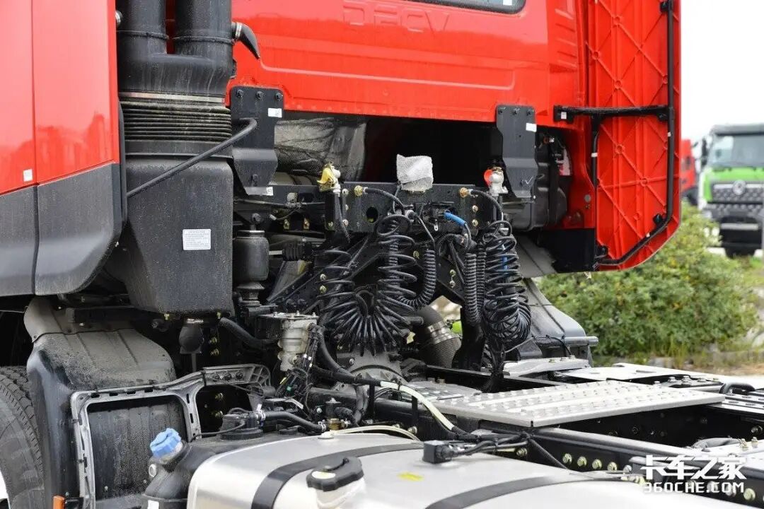 第一款车型是来自东风商用车的天龙KL重卡,动力上,该车搭载的是型号为东风康明斯Z14NS6B520的直列六缸柴油发动机,其排量为13.48升,最大输出功率为388千瓦(520马力),在1000-1500转时输出峰值扭矩2500牛米。