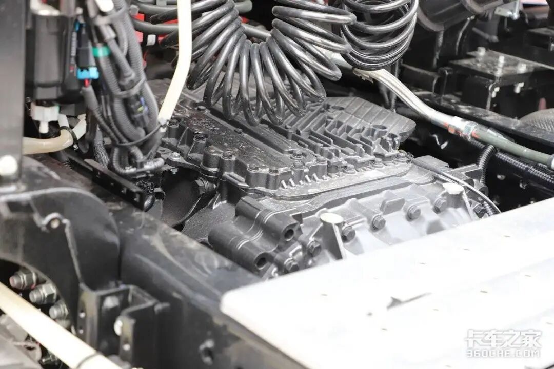 变速箱方面,该车与之匹配的是12档AMT自动变速箱,具体型号为伊顿ECE0-26N112C OD,采用超速档设计,最高档速比为0.77。该变速箱采用双中间轴结构以及静音斜齿设计,工作时噪音低磨损小,日常驾乘更舒适,使用寿命更高。