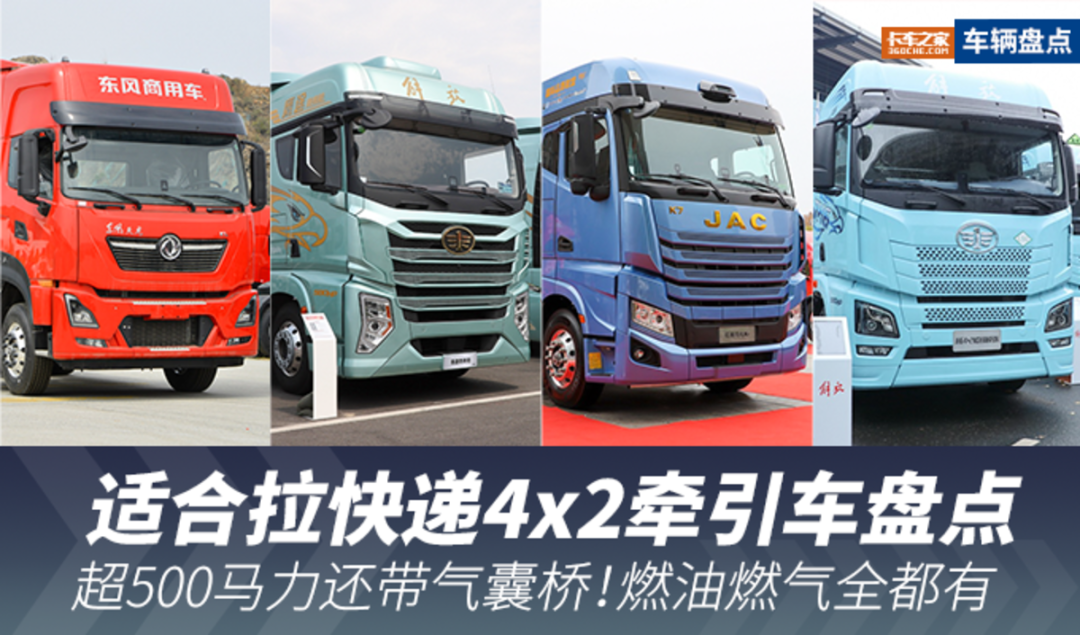 本期就为卡友们盘点四款4x2牵引车,它们动力输出均在500马力以上,运输效率更快一步,其中还有燃气车型,能够让运输成本更省。同时,这四款车型均配备有气囊悬挂以及诸多安全配置,对于货物以及驾驶员的保护更加到位。接下来我们就分别来看看它们具体表现如何吧。