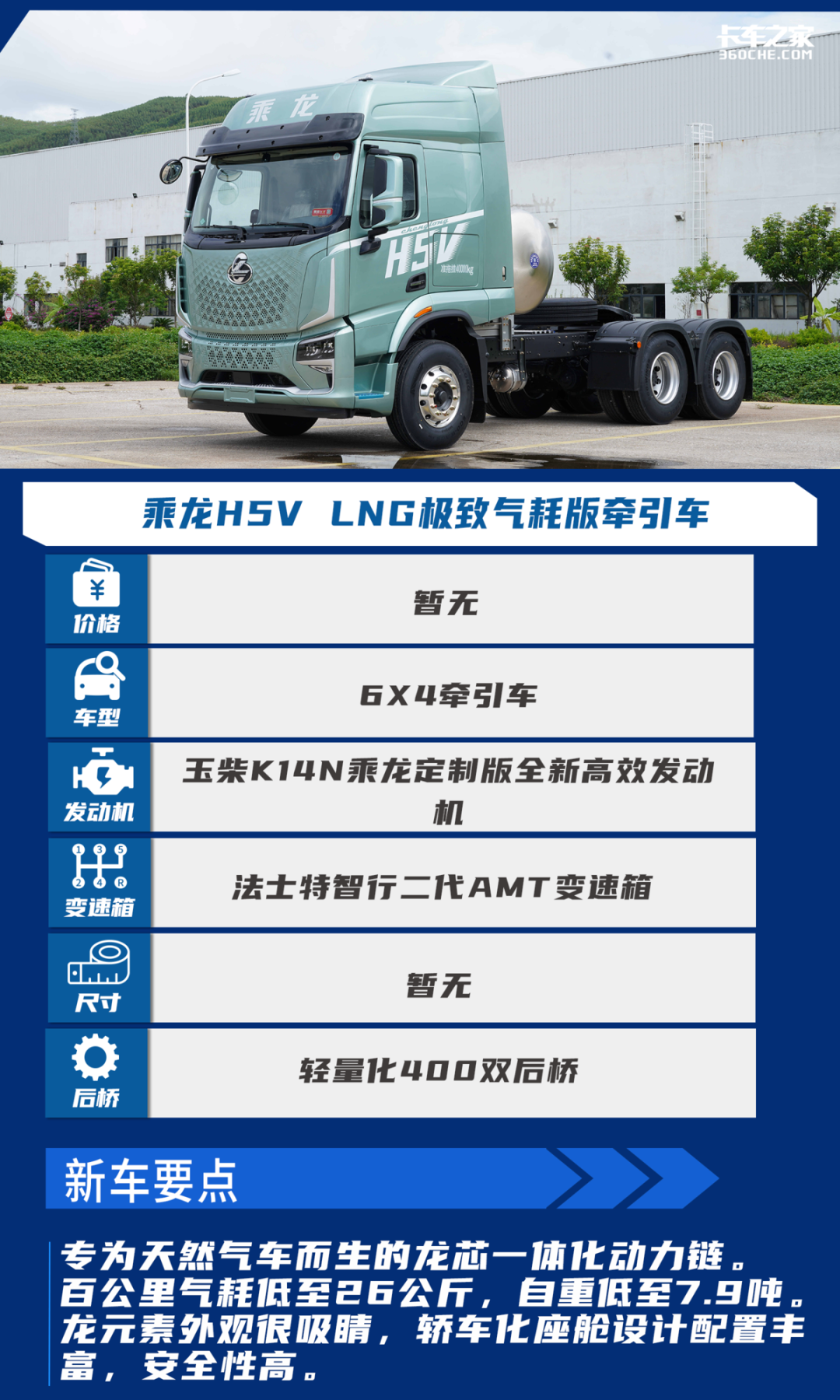 近年来,燃气车爆火,市场的火热也让越来越多的卡友开始关注燃气牵引车的性能和品质。为了满足卡友们对于更轻、更省、更好的需求,东风柳汽乘龙上新了一款540马力的乘龙H5V LNG极致气耗版牵引车,接下来,小编就带着大家一起详细了解一下。