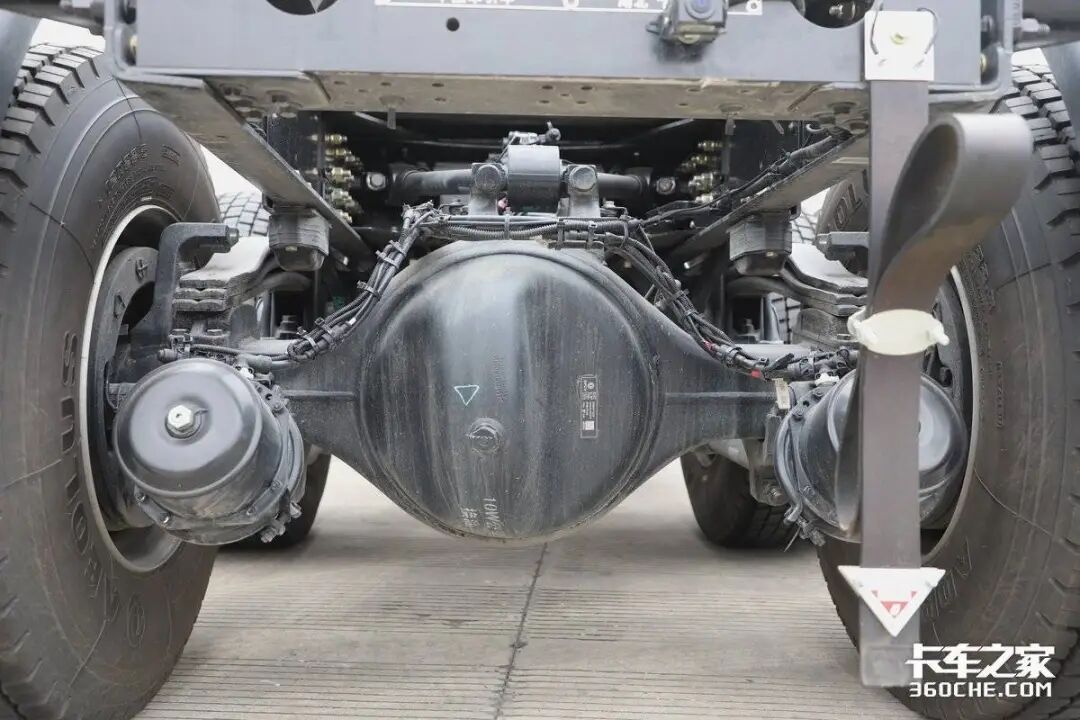 实拍车配备了速比为3.64的德纳DF400驱动桥,另外根据运输场景需求的不同,卡友们还可以选择3.42等速比的后桥。