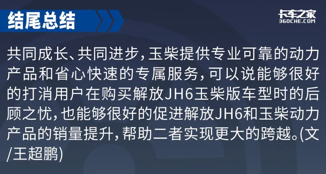 重要的是玉柴搭载解放JH6车型还提供有专属服务,其中包括:
