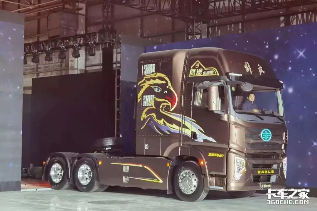 解放最新发布的高端车型——鹰途生活舱牵引车