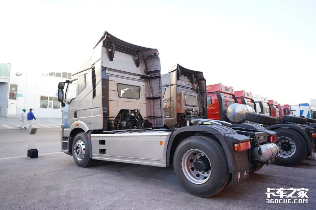展车全轮搭载铝合金轮圈,闪闪发亮的轮圈不光是好看,更重要是更轻,拉得更多,真圆度更好,非常适合高端干线物流运输。