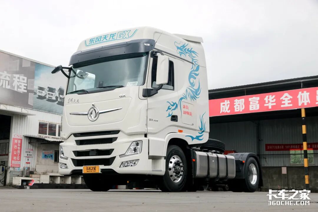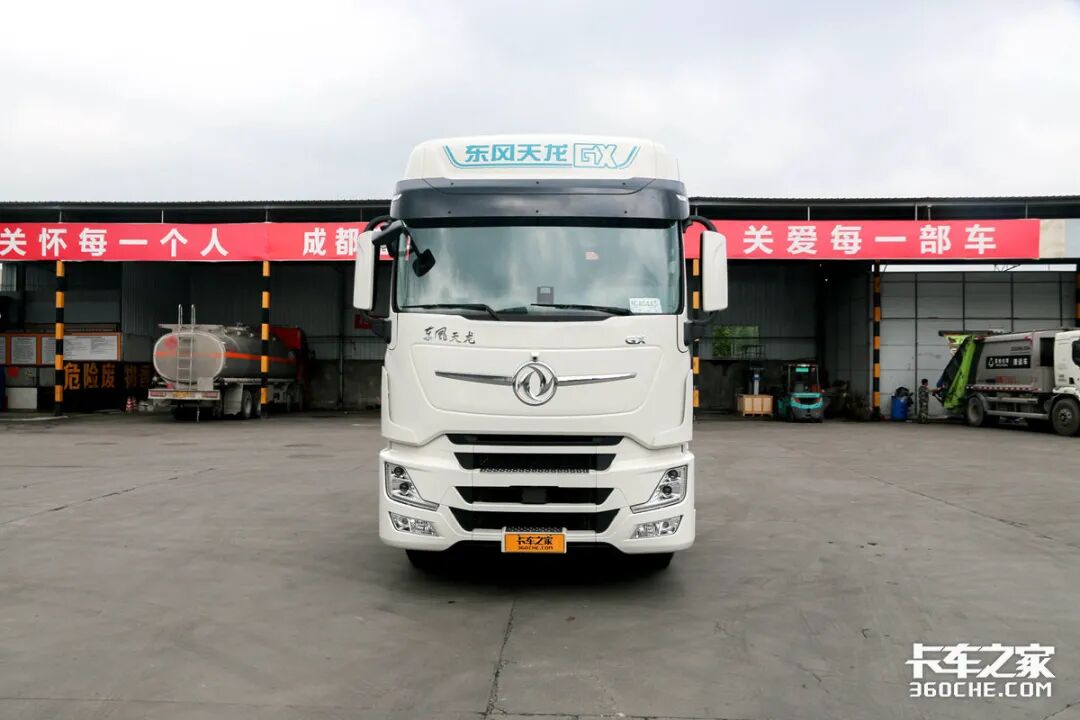 实拍车为苍龙青颜色,实际看上去颜色更偏向于白色。车顶东风天龙GX的印字采用青色,看上去比较的有格调。