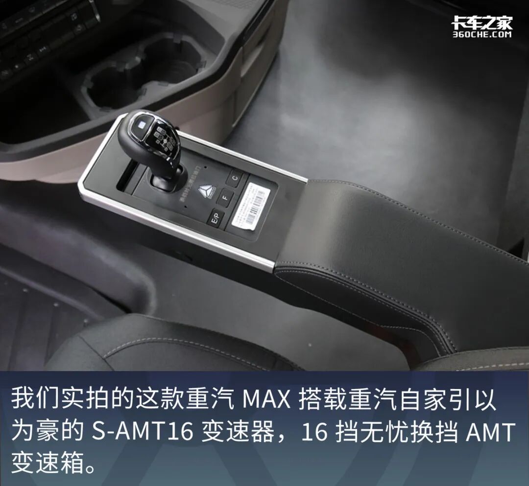 重汽自家的16挡AMT称之为S-AMT,这款变速器在重汽自家多款车型上均有装配。同时,MAX的换挡拨杆集成在座位上,不占用中间过道。