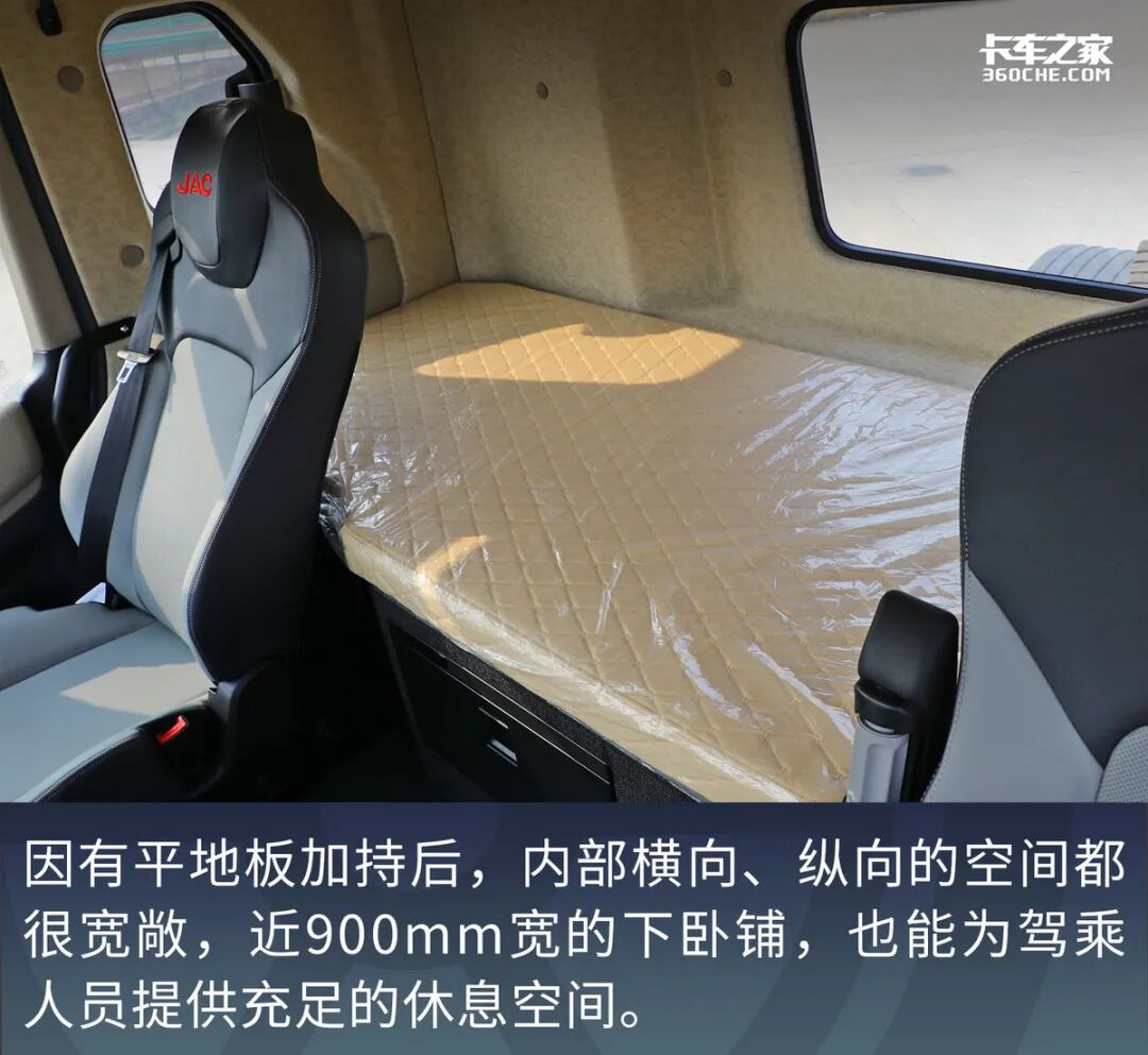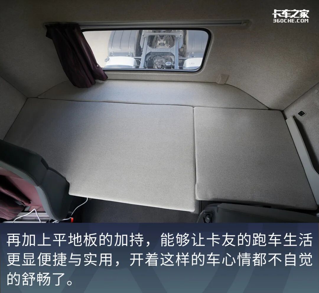 另外驾驶室内部空间达到5平方米,平地板+大卧铺,空间利用率更高,额热切储物空间也能得到拓展,日常储物没问题。