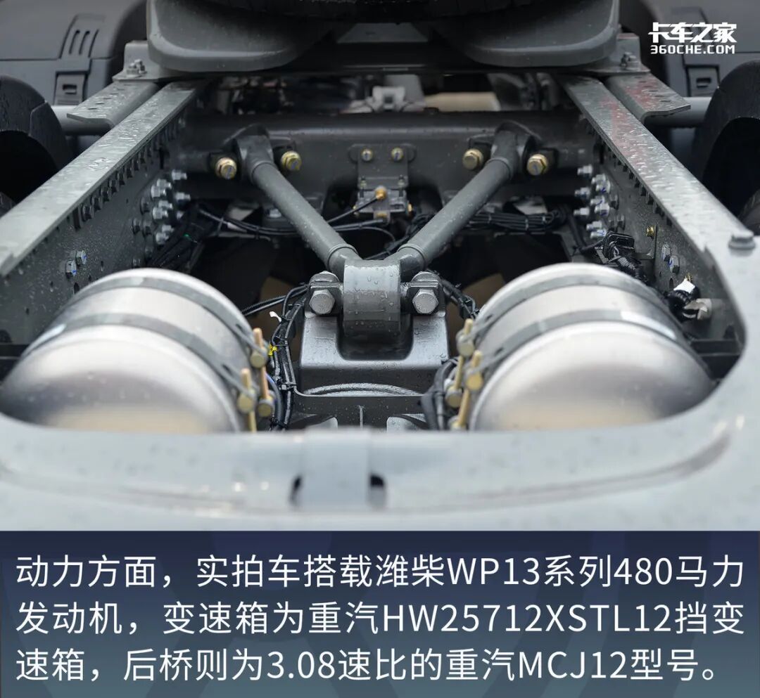 实拍车官方报价为34.99万起,相较于其它车型,重汽豪沃MAX还提供从400-580马力等20多种不同的动力匹配,变速箱也可以选装重汽目前主打的S系列16挡无忧换挡AMT变速箱。