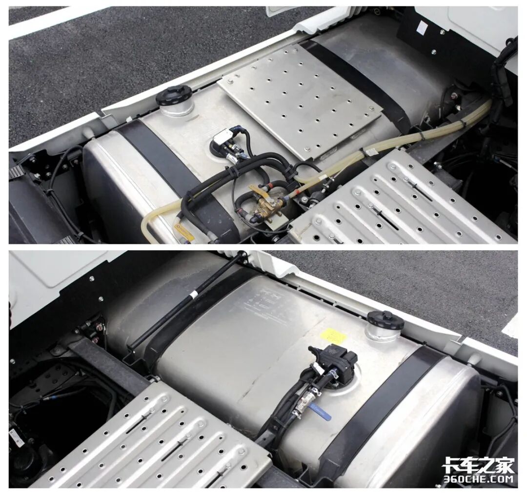 为保证长途续航需求,该车挂载共1400L双油箱,采用了电动泵油、带切换阀和水循环加热的设计。