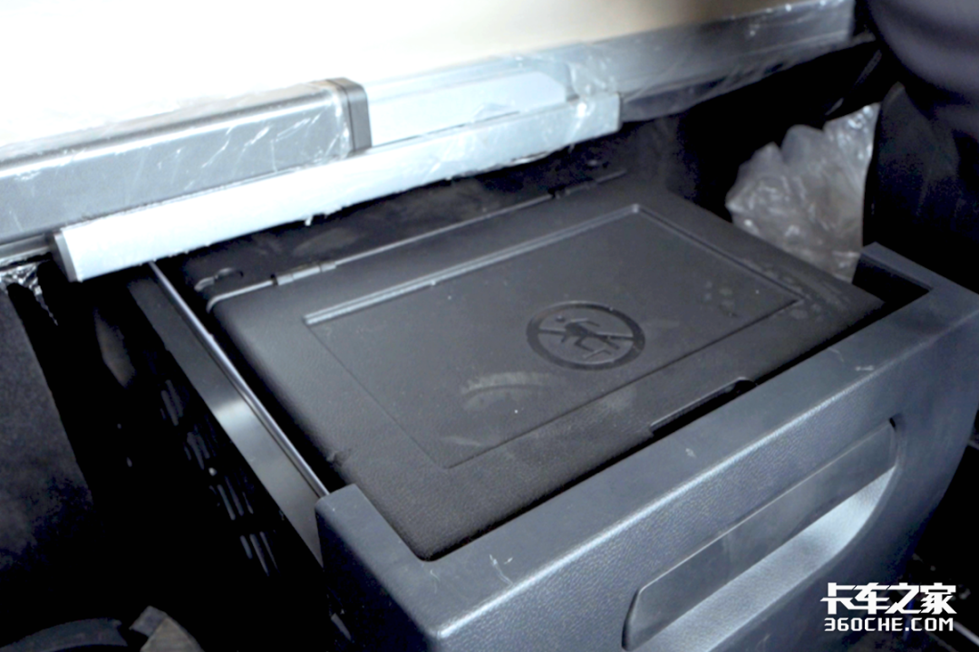 长途干线运输有时候一跑就是好几天,因此食材的储藏就显得很重要,为保证用户能吃上新鲜的食材,实拍该车卧铺下方是一个大号的英得尔车载冰箱,能装两人量的多天食材;能在路上吃上新鲜的饭菜,也足以驱散长途奔袭带来的劳累。