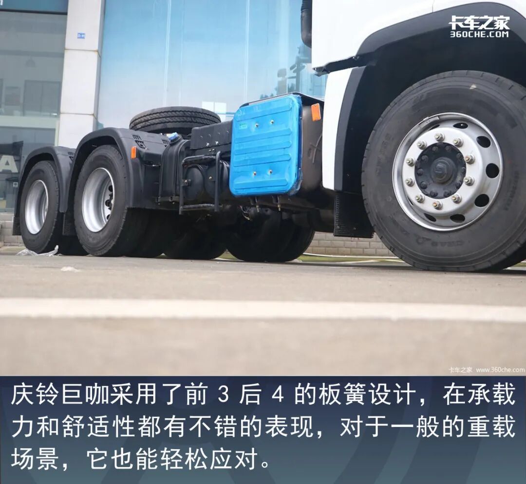 在底盘方面,这台庆铃巨咖采用了前3后4的板簧设计,在承载力和舒适性都有不错的表现,对于一般的重载场景,它也能轻松应对。当然,也可以根据自己的的运输场景选装前7后10的板簧,载重能力更强大。