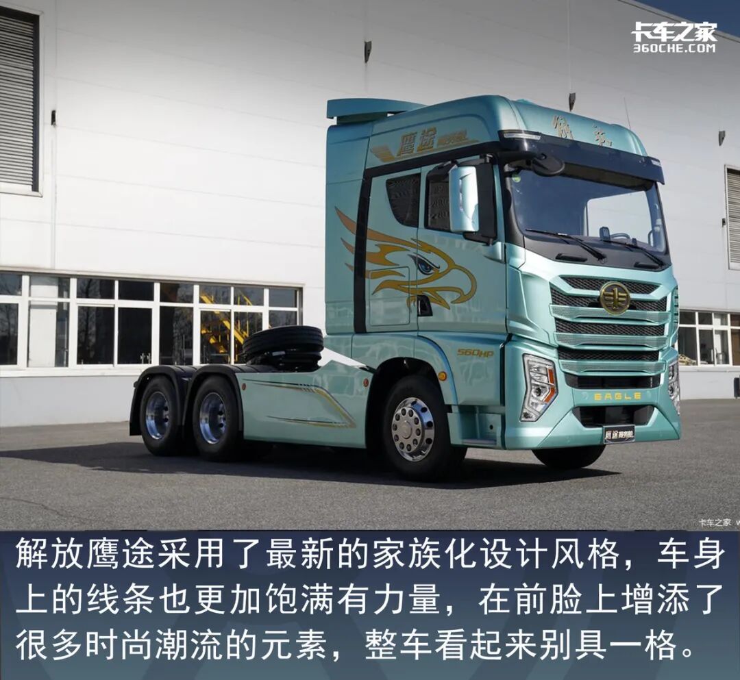 作为旗舰车型,解放鹰途的外观设计非常亮眼。前面罩线条更为简洁有力,并采用了大面积的凸起+蜂窝打孔设计,搭配上配合上解放的鹰标,看起来更显高级。