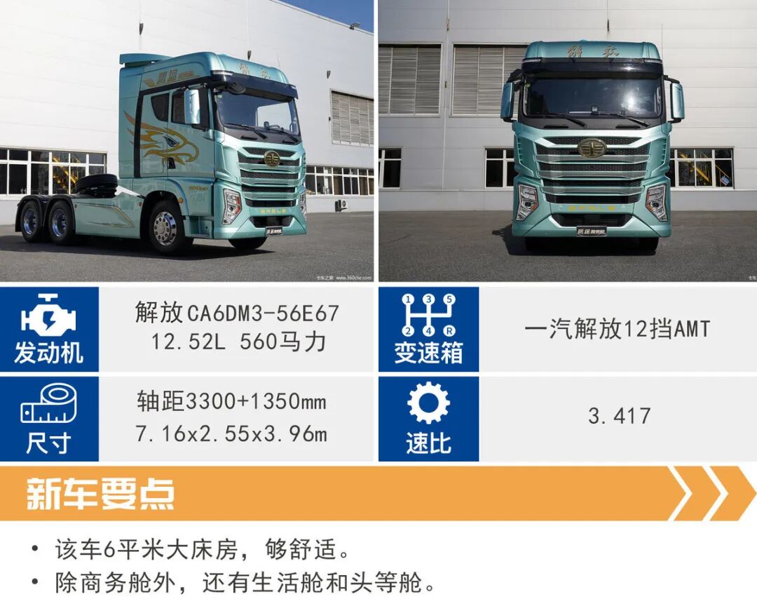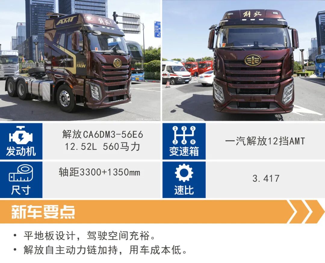 传动系统与之匹配是的解放旗下CA12TAX260A十二挡AMT变速箱,稳定性能优秀,而且还可以在变速箱上加装液力缓速器,面对长下坡时能提供更好的制动性能。