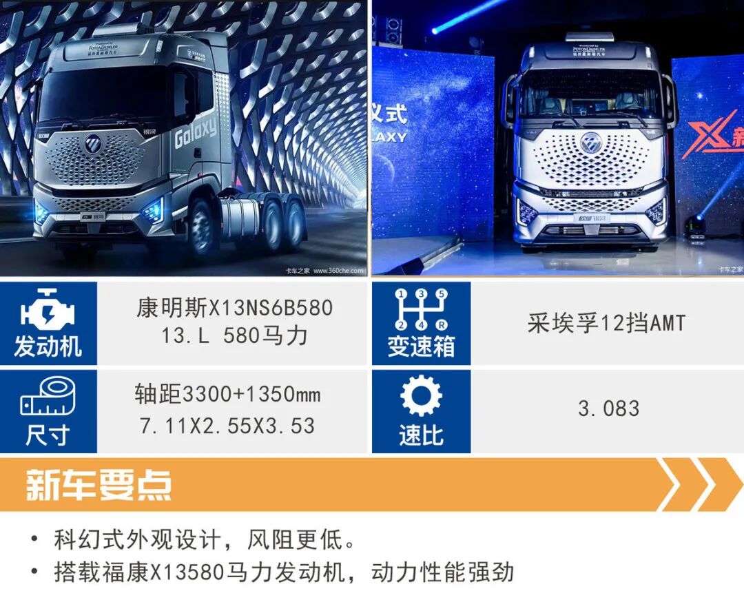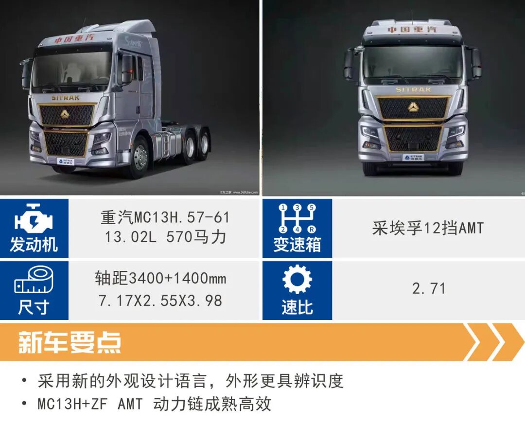 动力方面,C9H搭载的MC13.57-61发动机,排量是13.02L,峰值扭矩可以达到2600牛米,最大功率为570马力,动力性能强劲。