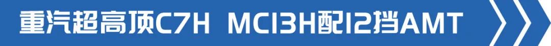 在发动机方面,这台C7H采用了型号为中国重汽MC13H.60-61的直列六缸柴油发动机,排量为13.02升,满足国六b的排放标准。其最大输出功率为441kw,最大输出扭矩为2700牛米,在950-1400rpm之间可以输出峰值扭矩。