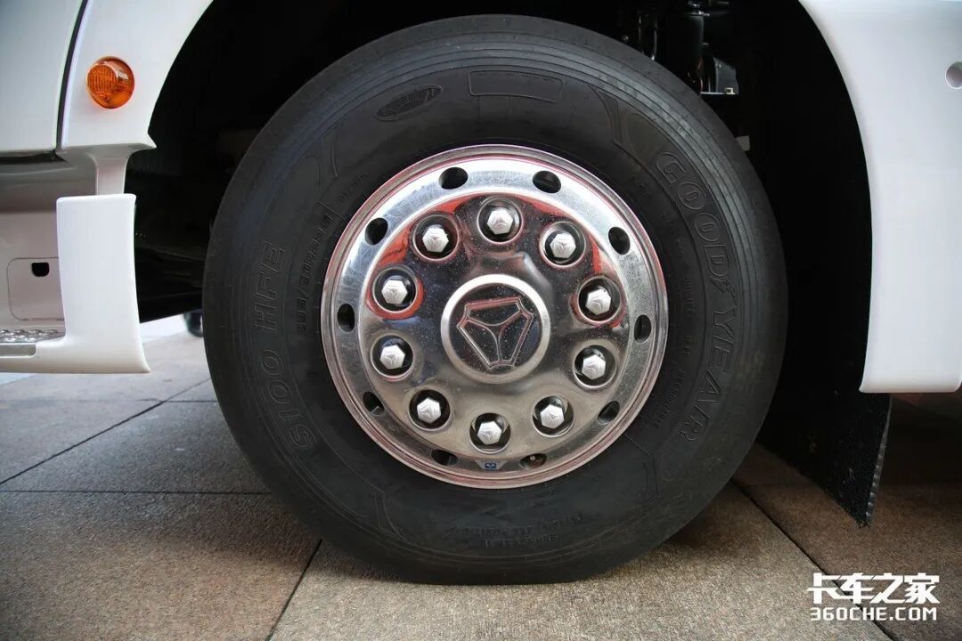 实拍车型采用了铝合金车轮、铝合金车轮罩、固特异轮胎等优秀行走配置,油箱容量为800升。底盘方面,采用前钢板弹簧后8气囊空气悬架的设计,不仅适合运输易碎品和高附加值货品,应对高效的甩挂运输也更加从容。后桥采用MCY13BES双9T级后桥,速比为3.7,经过卡车之家车速计算器模拟计算,在950-1400rpm转速区间时,这台C7H的最高时速可达62-91km/h。