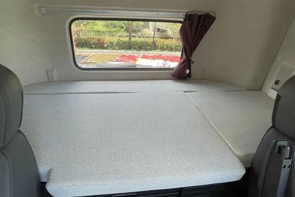 与下窝铺一起提升的还有上卧铺空间,上卧铺除了床垫更加宽大之外,还增加了三个顶置储物格,可以更好放置一些日常行车所需要的的物品。