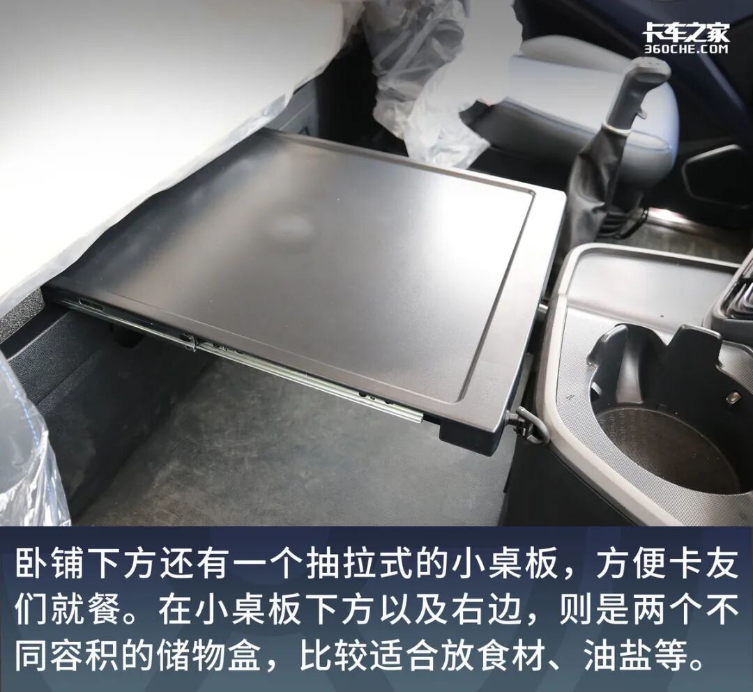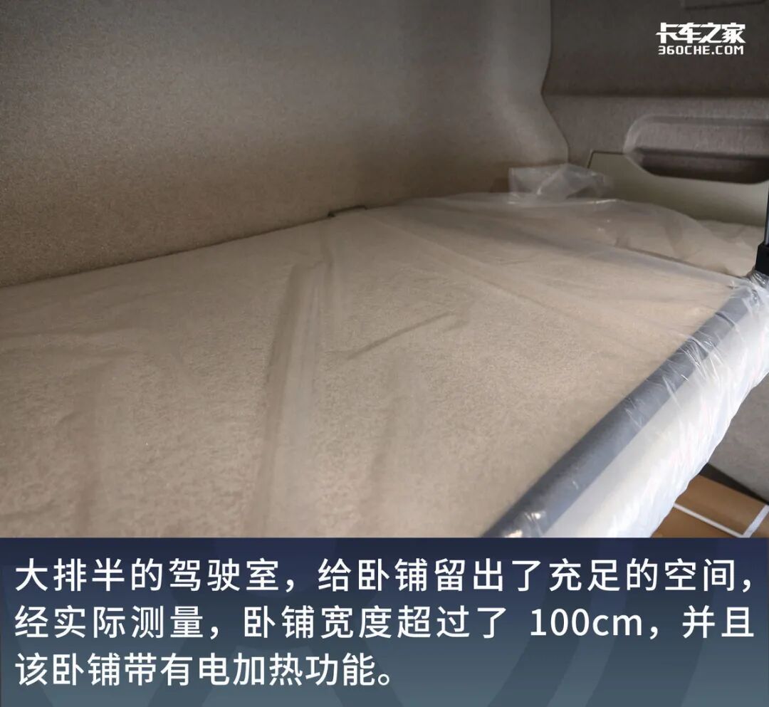 与此同时,为了满足卡友们的睡眠需求,大排半的驾驶室,给卧铺留出了充足的空间,经实际测量,卧铺宽度超过了100cm,并且该卧铺带有电加热功能,让卡友们可以享受到在家睡眠的感觉。