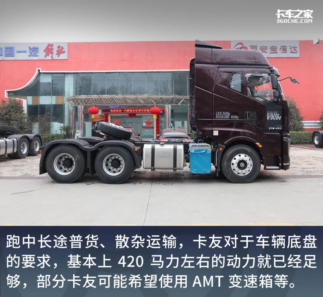 跑中长途普货、散杂运输,如果运输的货物总质量在30吨以上,那么就需要一款牵引车来跑运输,卡友对于车辆底盘的要求,基本上420马力左右的动力就已经足够,部分卡友可能还会对变速箱有着自己特殊的要求,例如希望使用AMT变速箱等。