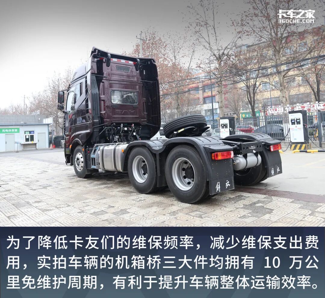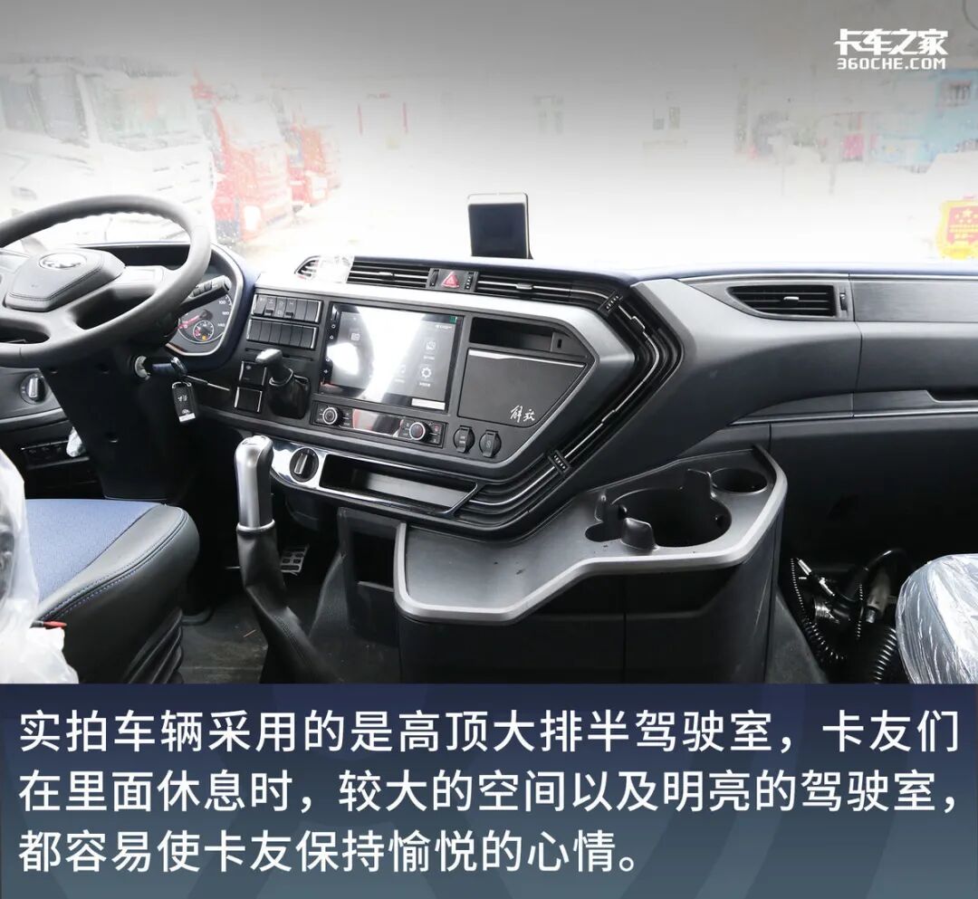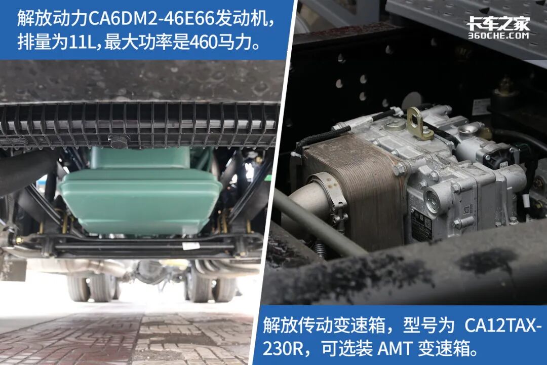 为了保证运输的时效,卡友们对车辆的底盘配置会比较关心,为了给车辆提供一个良好的动力输出,实拍车辆使用的是解放动力CA6DM2-46E66发动机,排量为11L,最大功率是460马力。与之匹配的是解放传动变速箱,型号为CA12TAX230R,是一款手自一体式变速箱,另外也可以选装AMT变速箱。