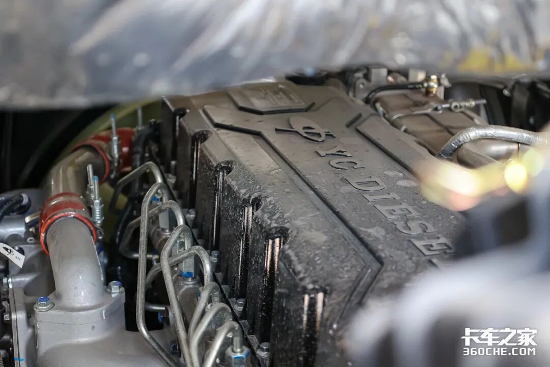 动力方面搭载了玉柴YCK11460-60发动机,最大输出功率460马力,符合国六排放标准。最大扭矩2200N.m,经济转速区间为1000-1500rpm,满足了标载运输经济性与时效性需求。用户还可以根据不同工况的需求,选择玉柴490马力或510马力的发动机。甚至中长途物流快运的用户,能选装最高600马力的康明斯发动机。