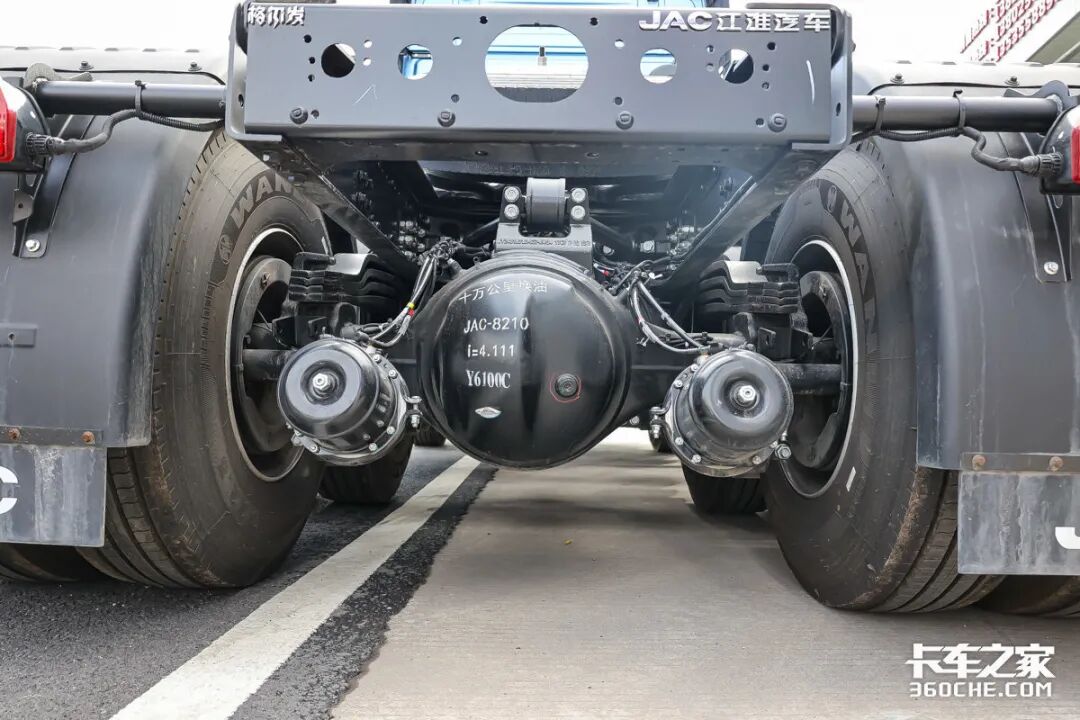 底盘方面,实拍车配备了速比为4.111的440后桥,适用性更强。十万公里的长换油设计,最大限度的降低用户后期的养车成本。悬架采用轻量化的少片簧设计,前2后4的高强度板簧确保了车辆的承载稳定性。