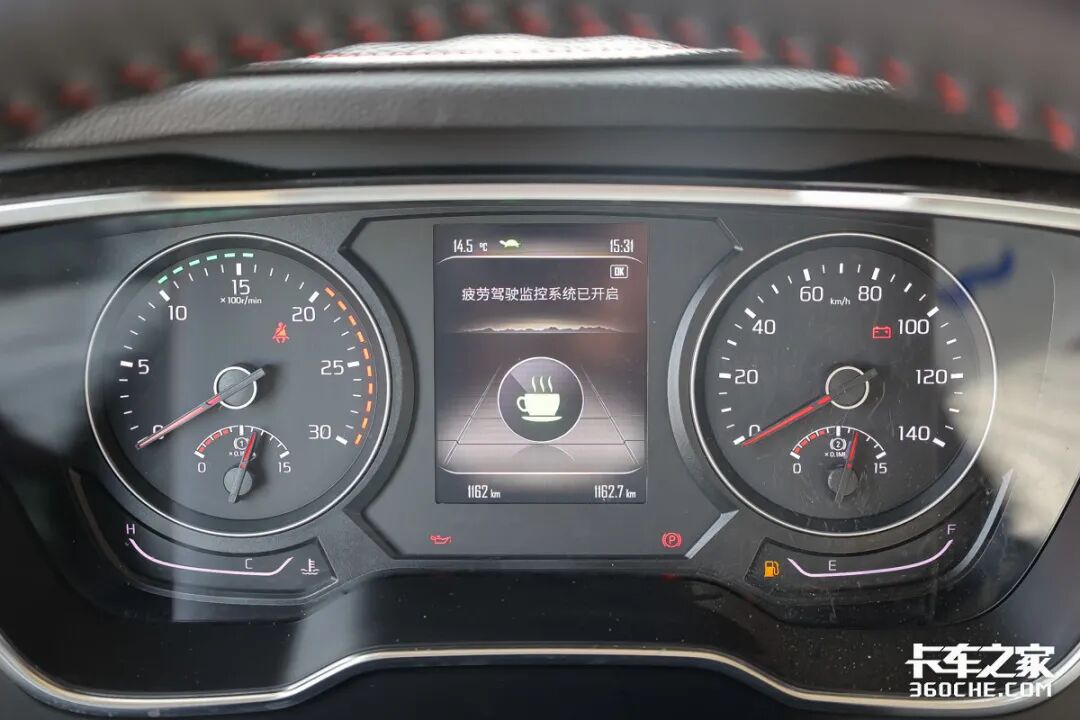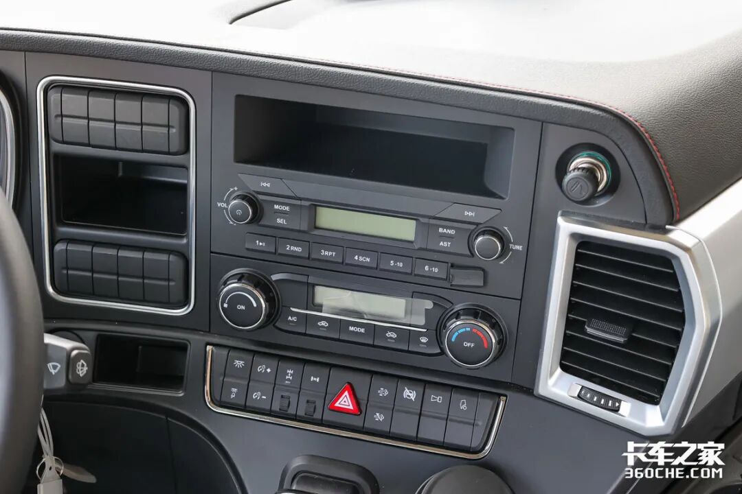 中控部分的配置以实用为主,环抱式驾驶台设计让收音机和空调按键触手可及。当然,卡友们可以选装10.4英寸悬浮中控大屏,获得更智能的人机交互功能。
