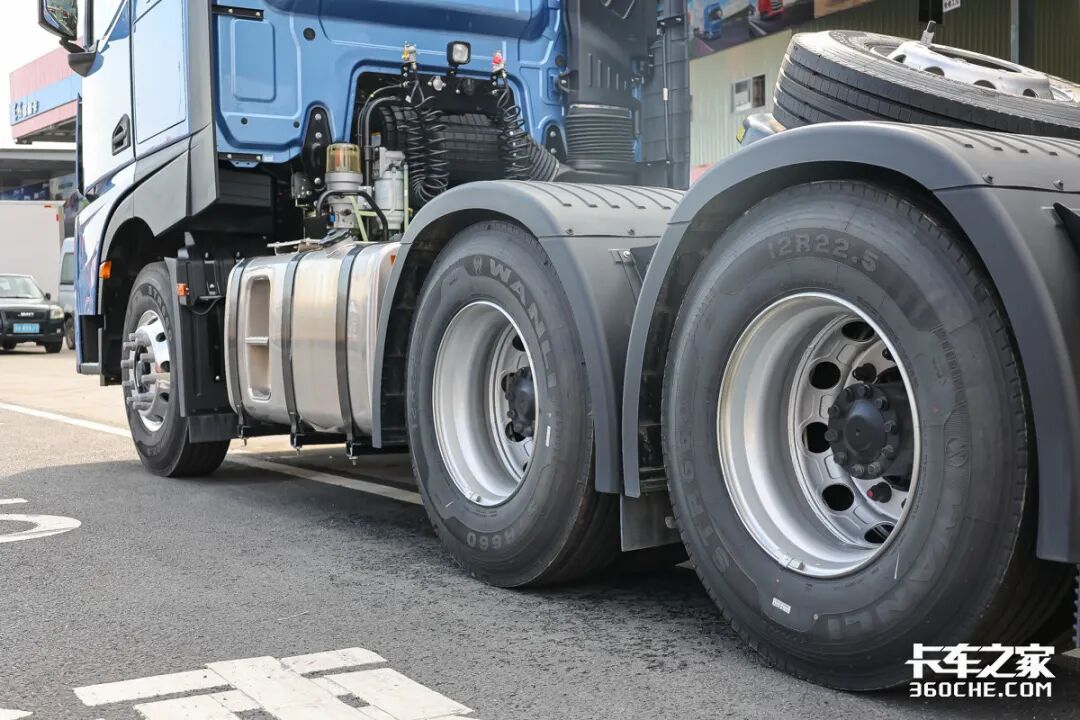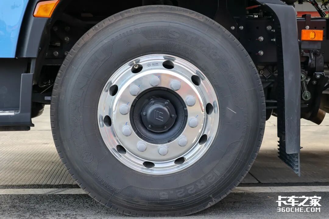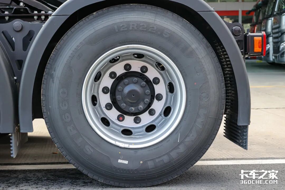 前轮配备了珀然铝合金轮辋,可以起到不错的散热和减轻自重的效果,后轮则是采用了全新的多孔钢制轮圈,可以实现更大化的承载能力。轮胎使用了万力品牌的STR660,规格为12R22.5,这款轮胎具有优异的长距离行驶性能,还有着不俗的耐磨性,贴合车辆的使用工况。