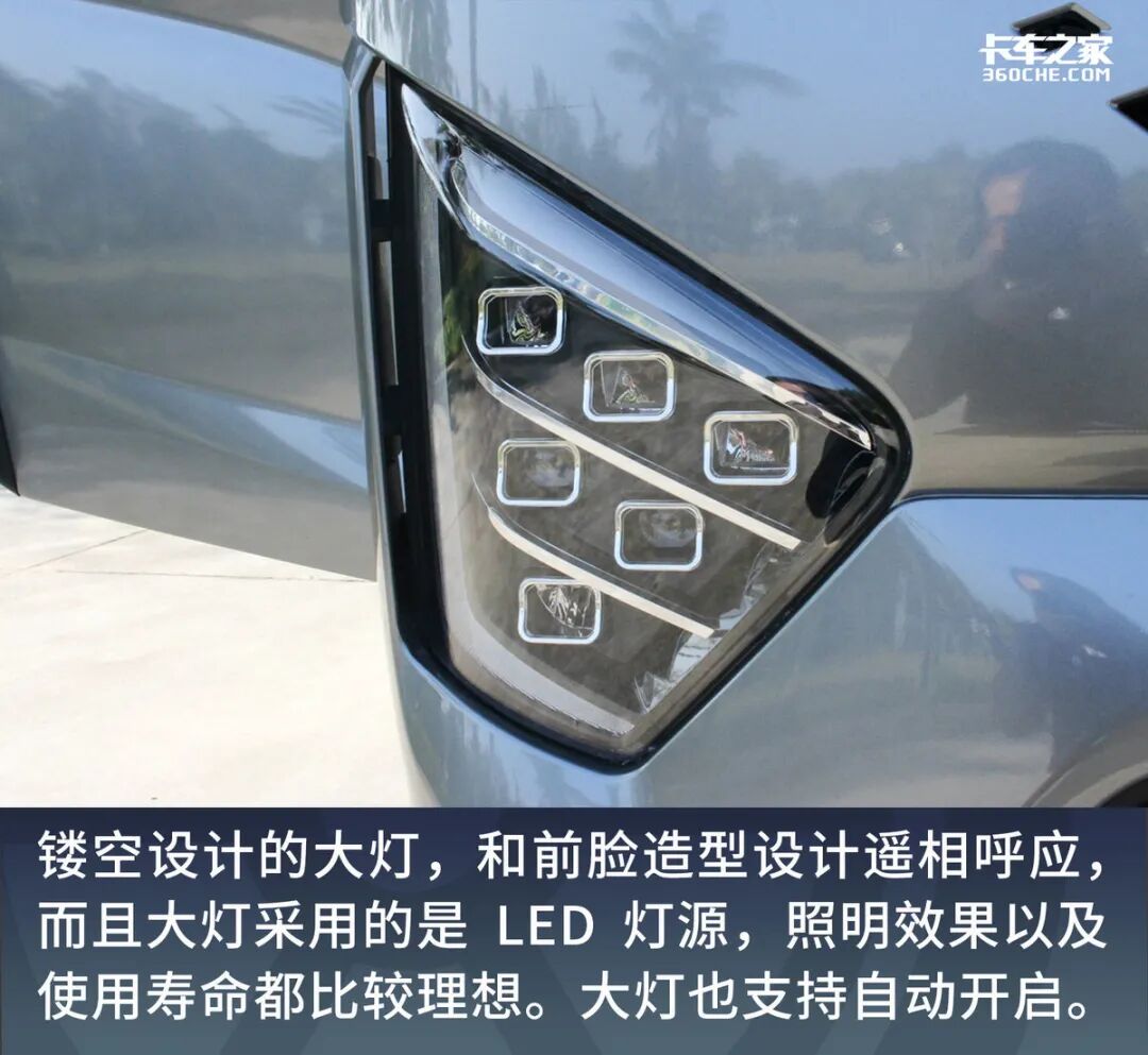 镂空设计的大灯,和前脸造型设计遥相呼应,而且大灯采用的是LED灯源,照明效果以及使用寿命都比较理想。当卡友们在照明条件不良的情况下开车时,车辆的大灯支持自动开启,可以帮助卡友更好的去管控车辆的大灯。