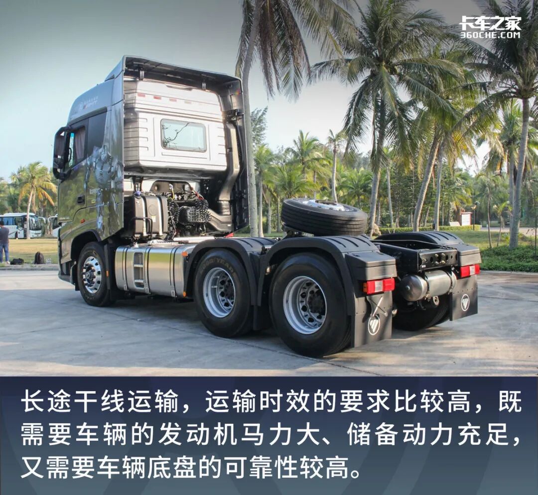 首先对于长途干线运输,运输时效的要求比较高,在这样的情况下,既需要车辆的发动机马力大、储备动力充足,又需要车辆底盘的可靠性较高,零部件等不容易出现问题。