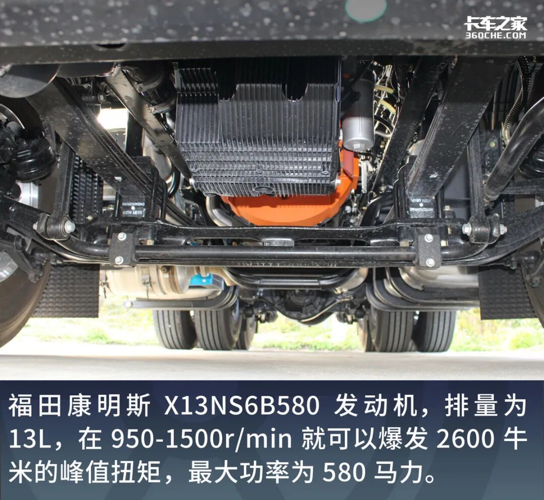 卡友们对运输时效的要求,一般都比较倾向于大马力车型,较大马力的发动机,能够给车辆提供一个良好的动力储备,能够让车辆更好的适应多种路况信息,实拍车辆搭载的是福田康明斯X13NS6B580发动机,最大功率为580马力,并且该发动机主要零部件的耐久性、耐热性表现也比较好。
