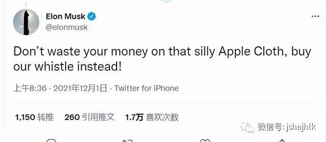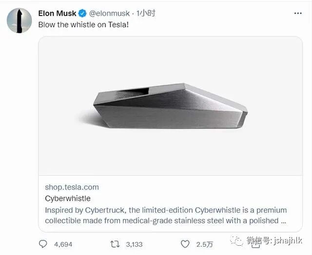 不过苹果抛光布显然不光被果粉吐槽,这次连埃隆马斯克也吐槽苹果抛光布是智商税的产品。埃隆马斯克发布了自家新款的产品,一款名为Cyberwhistle的哨子,设计受Cybertruck皮卡的启发,是一款优质的收藏品,由经过抛光处理的医用级不锈钢制成。在介绍这款产品的同时,埃隆马斯克还不忘吐槽一番苹果抛光布,别再为苹果的抛光布浪费钱了,来买我们的特斯拉哨子吧。