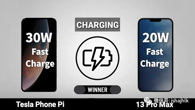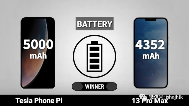 在机身内部的电池容量方面,特斯拉手机π将会搭载5000毫安的电池,同时支持30W的有线快充,iPhone13ProMax搭载的是4352毫安电池,支持20W的有线快充。如果从手机电池容量及快充的规格来看,特斯拉手机π的表现要比iPhone13ProMax更好。